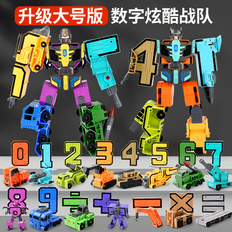 📚 大号儿童数字玩具变形机器人数字0-9可拼装汽车合体益智男孩玩具