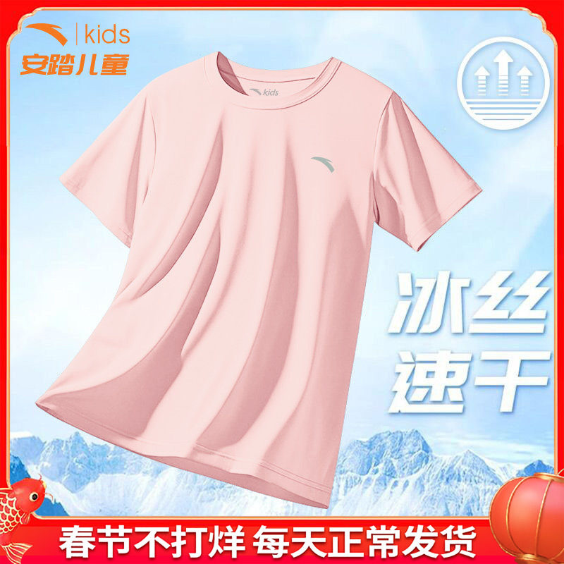 📚 安踏儿童速干衣短袖女童冰丝T恤2026夏季新款中大童百搭透气上衣