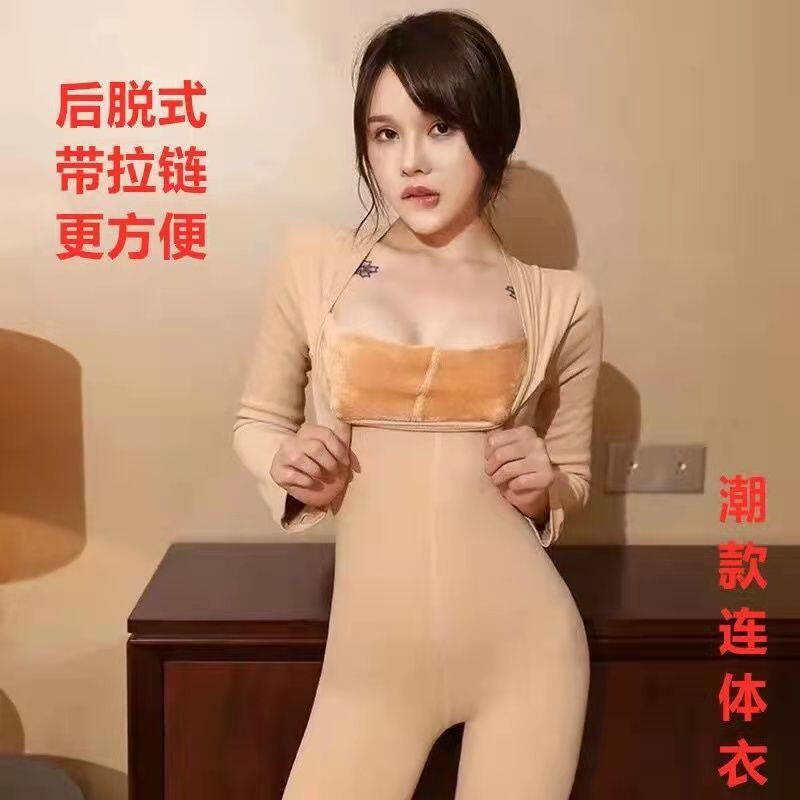 📚 秋冬加绒连体塑身衣全身长裤性感拉链款保暖开档瘦身收腹连体衣