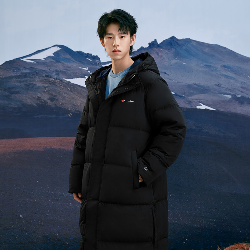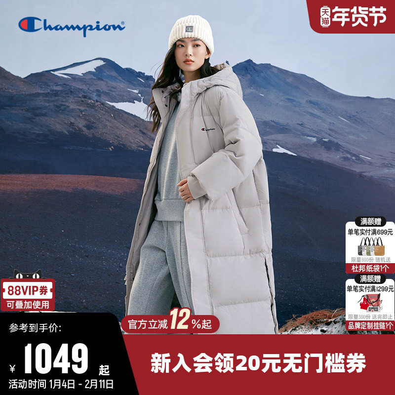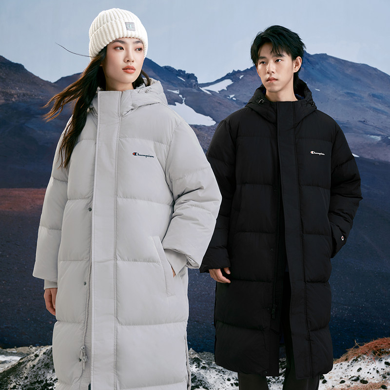 📚 Champion冠军长款羽绒服女冬季加厚情侣连帽保暖休闲宽松外套男潮