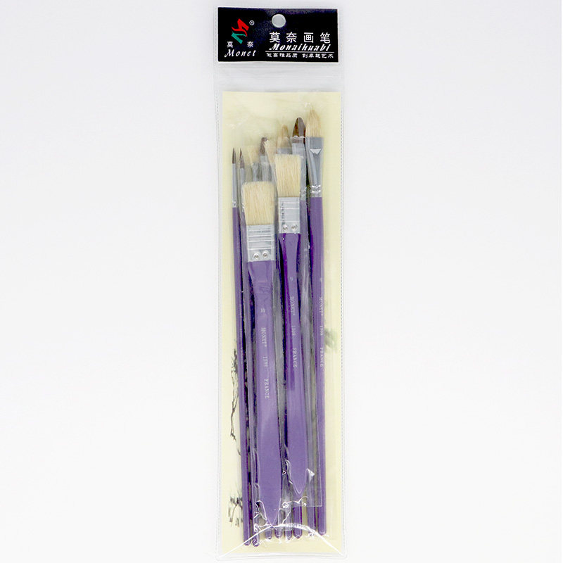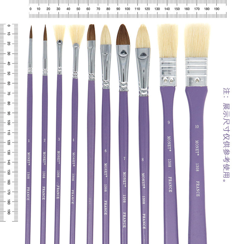 📚 莫奈1308油画笔套装 10支装 板刷平峰圆峰扇形勾线狼毫猪鬃毛画笔
