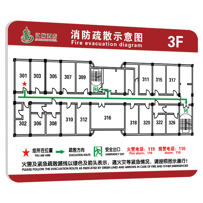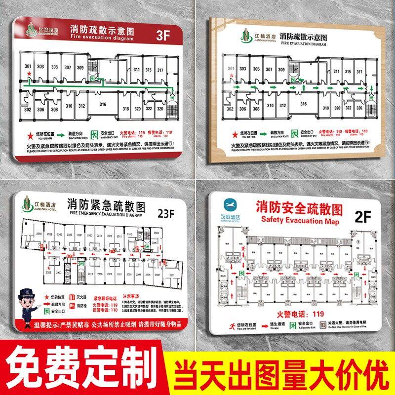 📚 消防疏散示意图设计安全疏散指示图学校宾馆酒店办公楼公寓宿舍消防通道分布路线定制安全风险等级四色图制作