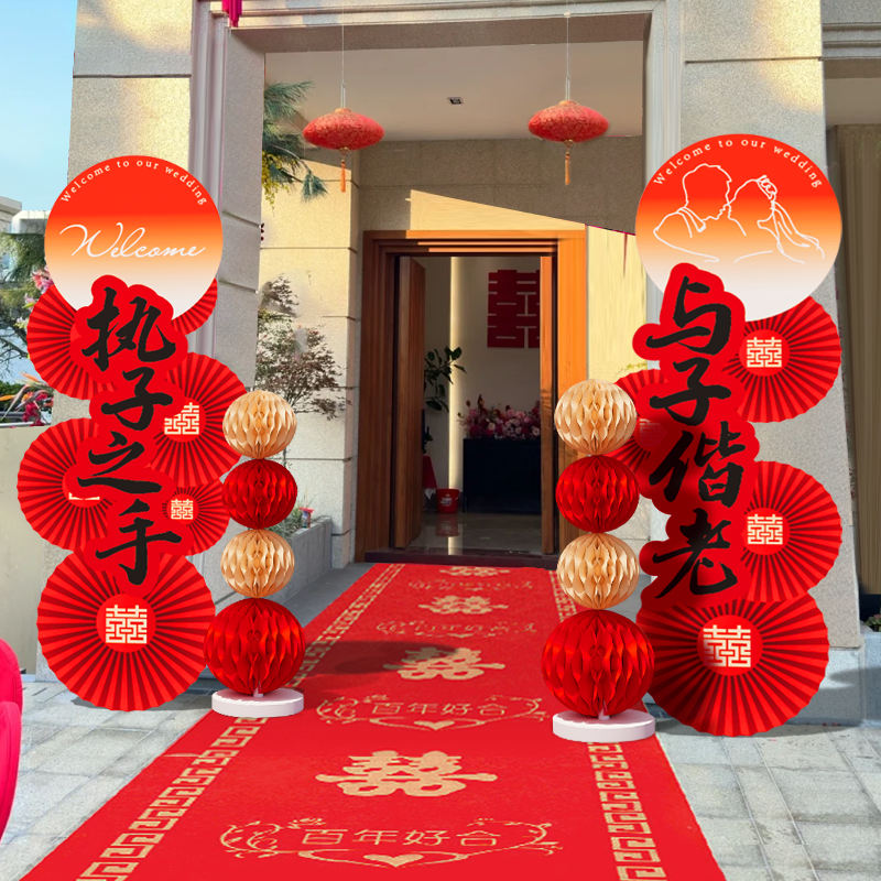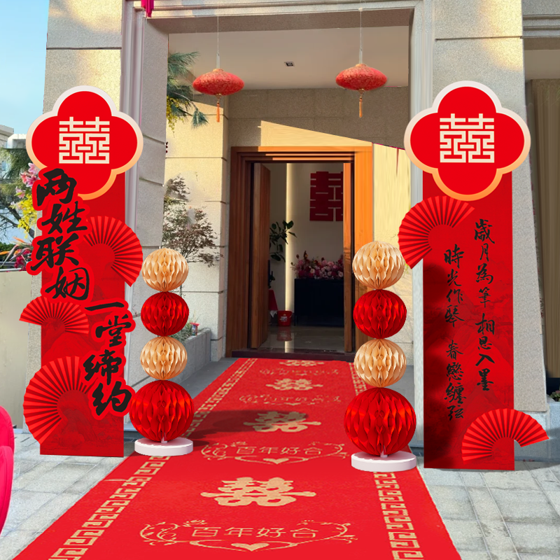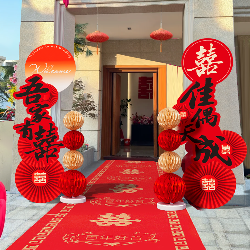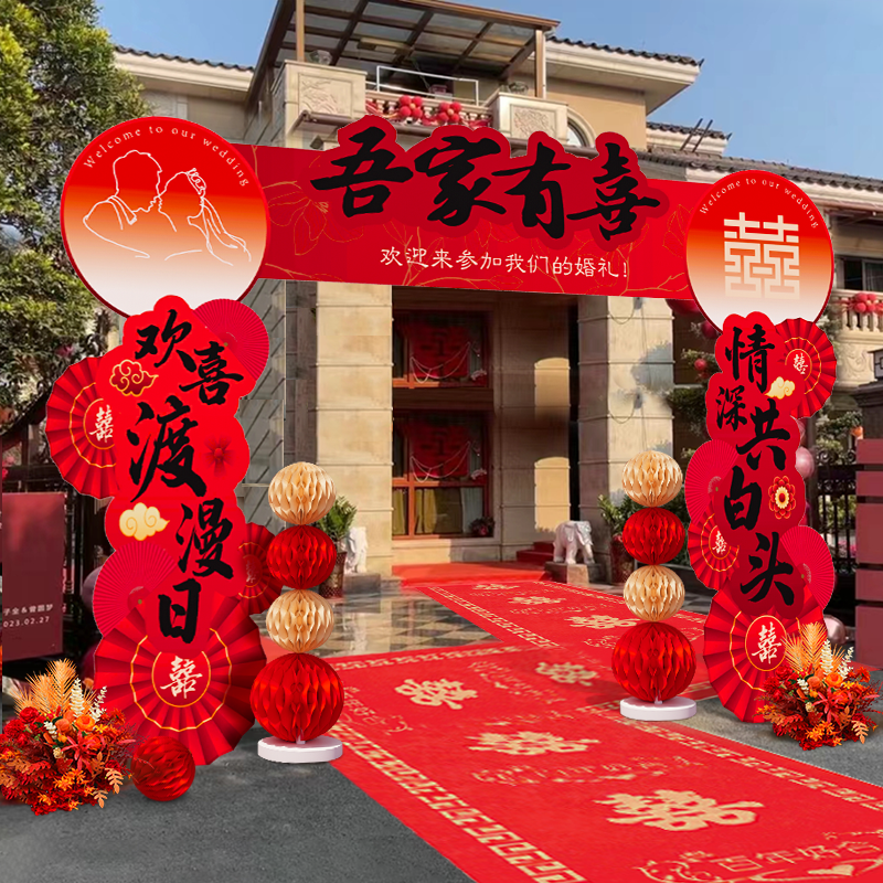📚 结婚房婚礼装饰庭院大门口场景布置婚庆现场吾家有喜kt板路引农村