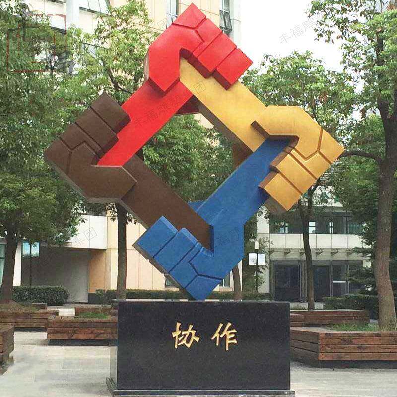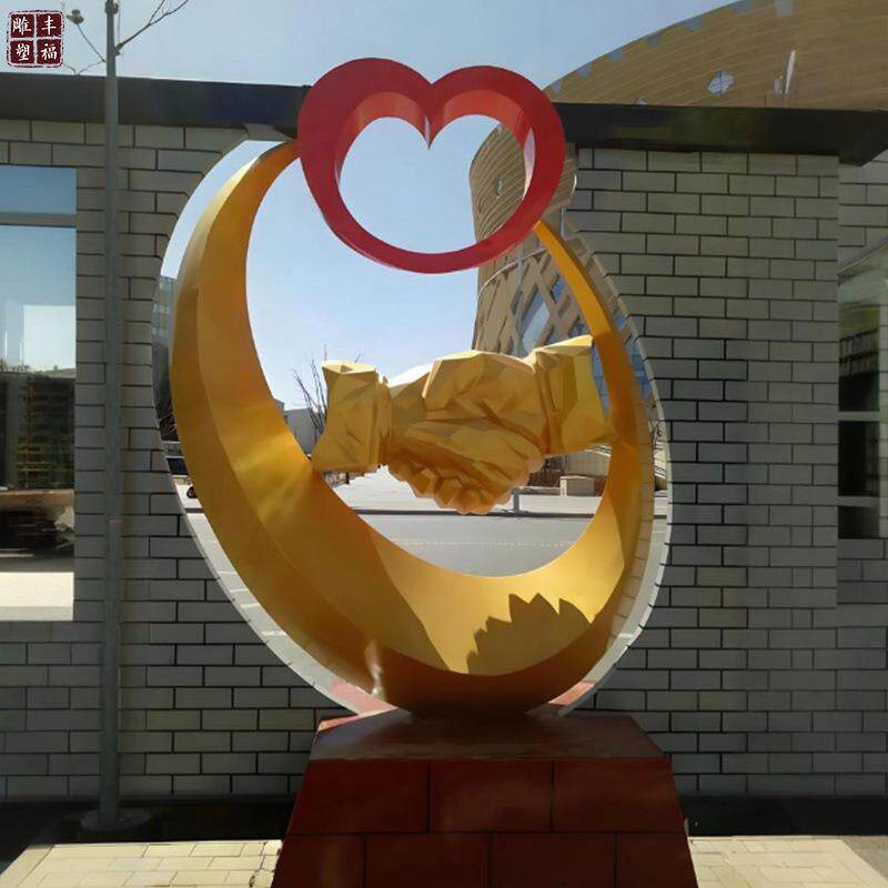 📚 大型不锈钢抽象握手雕塑户外广场不锈钢协作雕塑几何环形金属摆件