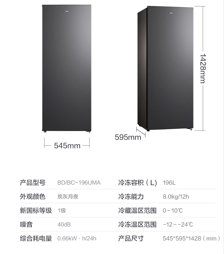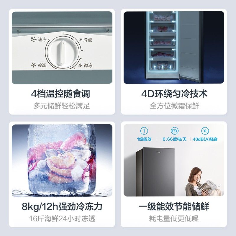 📚 美的家用196UMA/118升立式侧开门冷柜抽屉冷冻冷藏母乳小冰箱