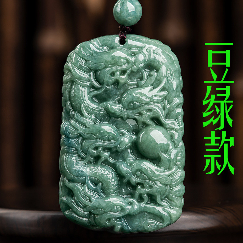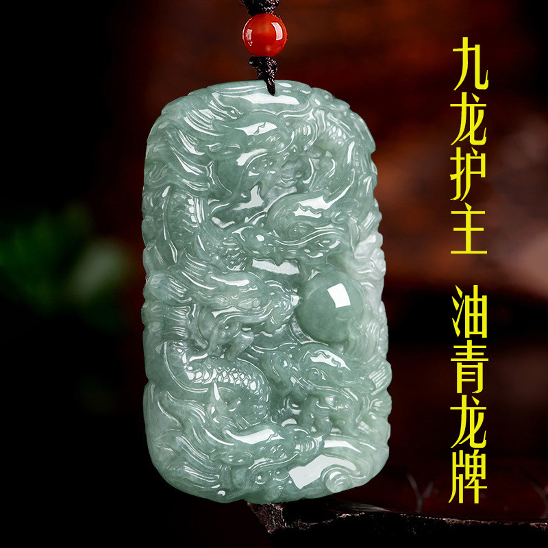 📚 天然缅甸a货翡翠龙牌九龙护主生肖玉石吊坠冰种挂件原创设计物品