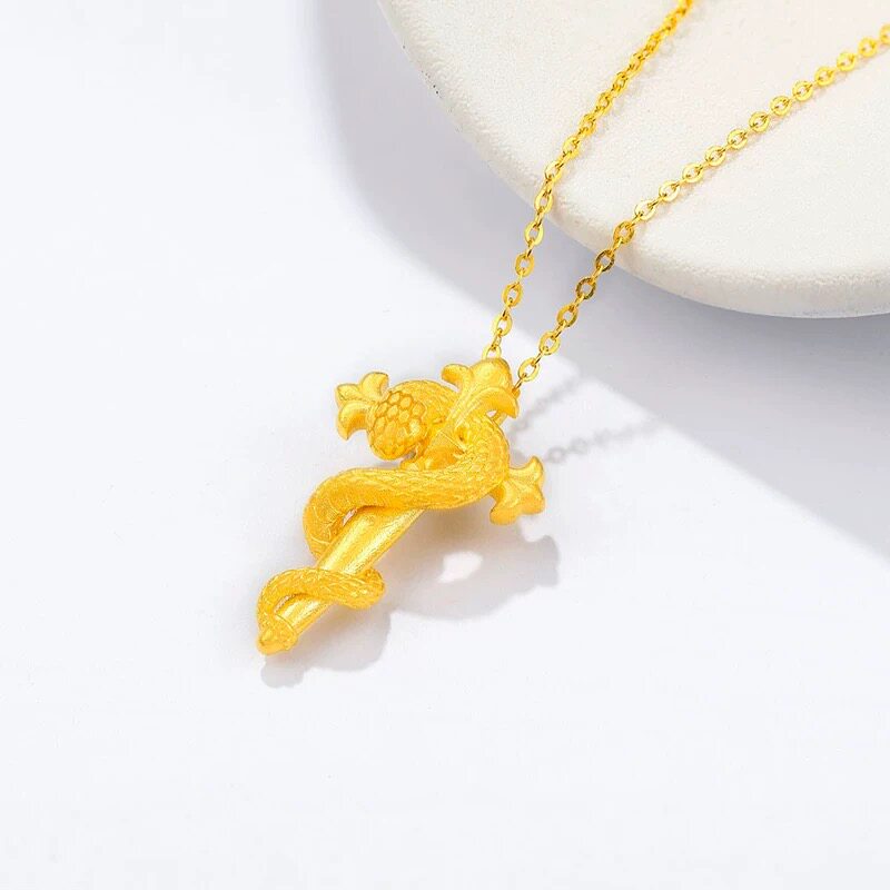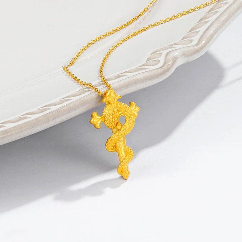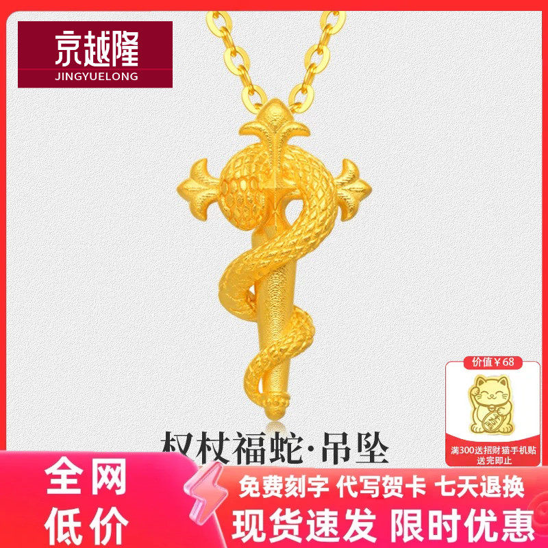 📚 权杖蛇十字架生肖蛇黄金吊坠蛇年本命年金蛇项链女礼物属蛇的金饰