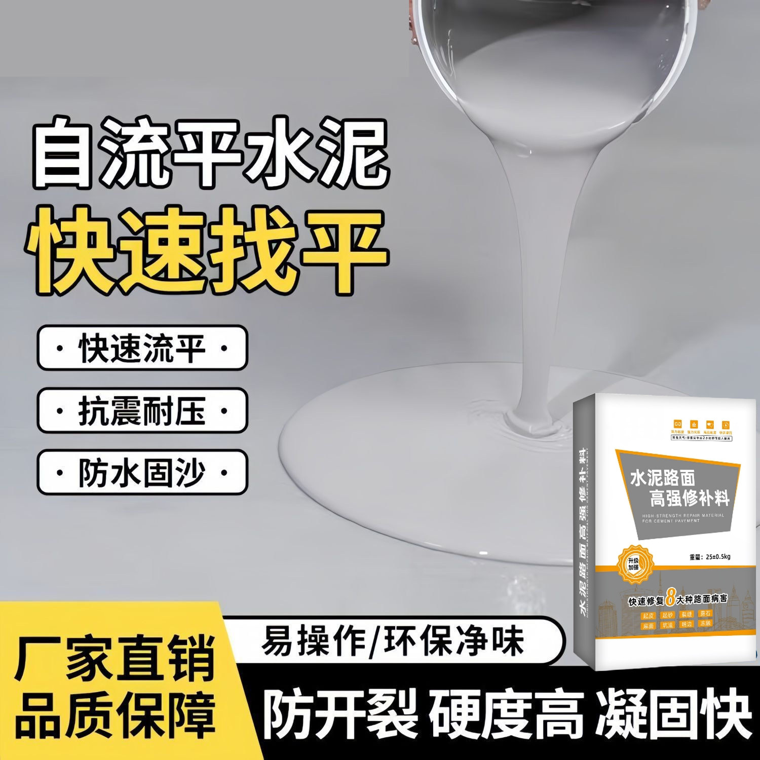 #水泥路面修补料 #家居改造 #自流平抗裂 #起砂坑洼路面 #高强修补料 #券后价18元