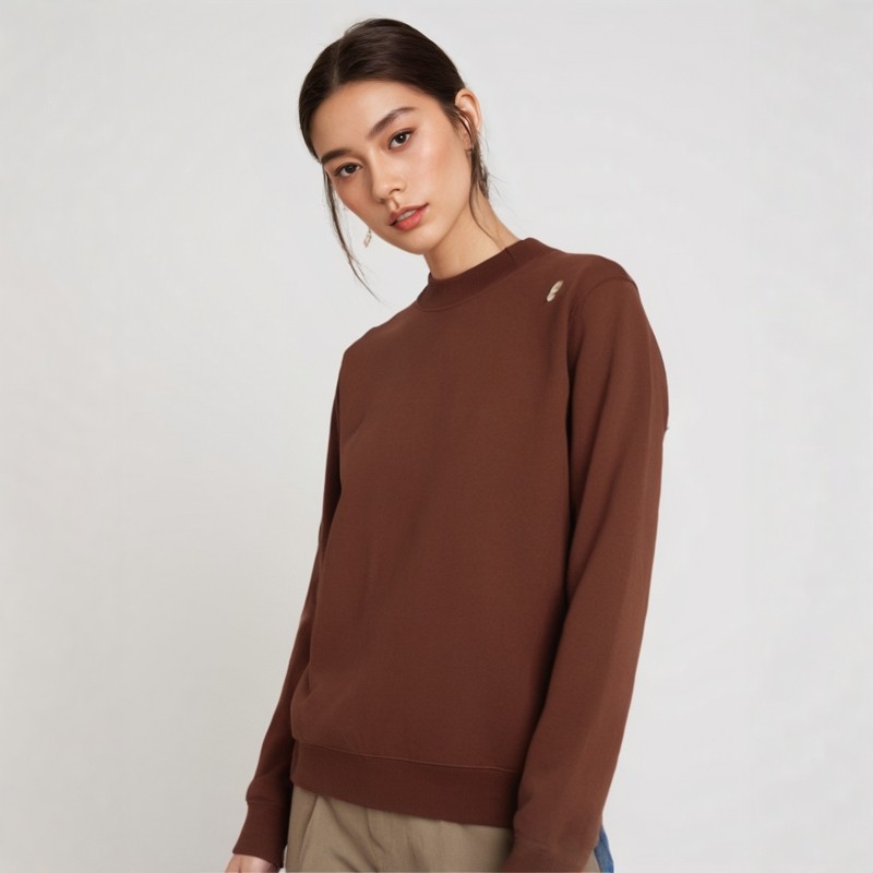 📚 折设计师品牌RECTO女士韩系休闲橡胶标志丝绸棉运动长袖套头衫