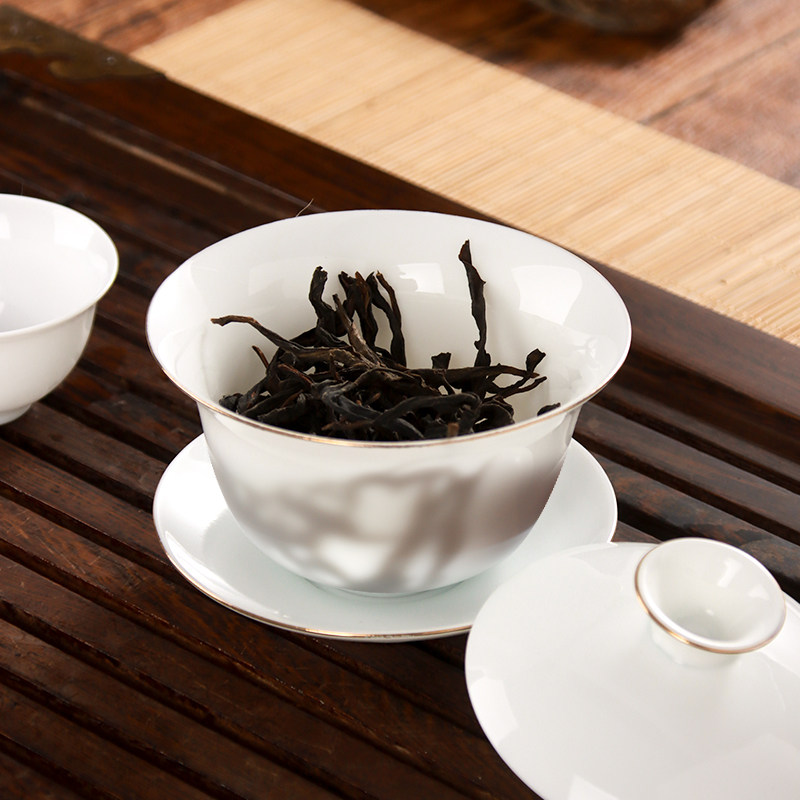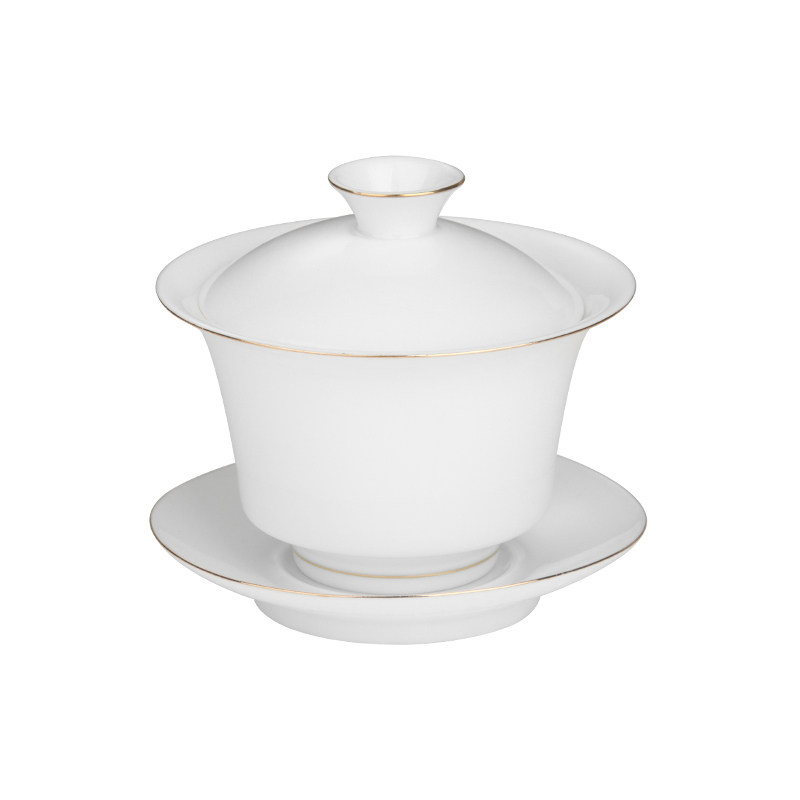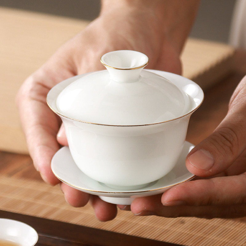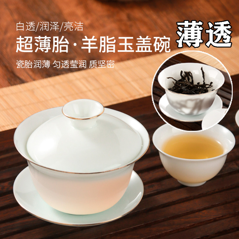 📚 纯白羊脂玉薄胎白盖碗白瓷家用办公简约陶瓷三才杯泡茶碗功夫茶具