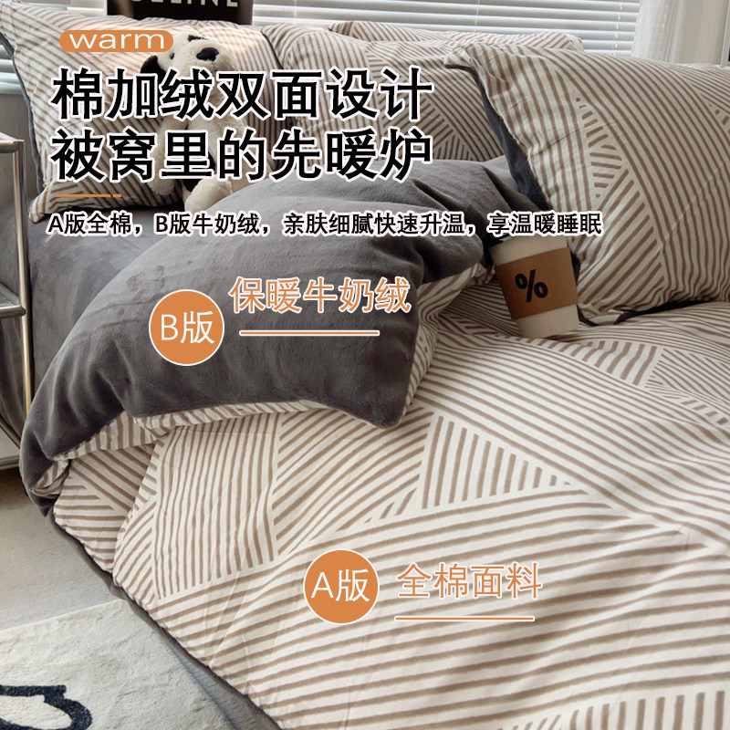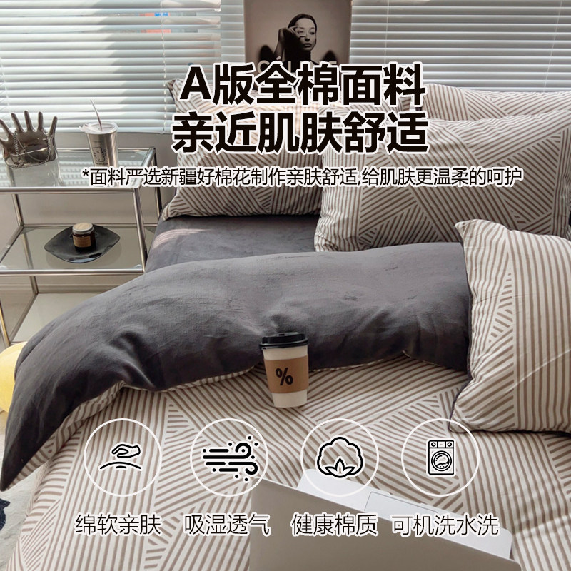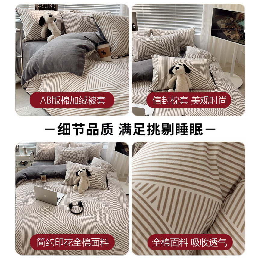 📚 无印良品a全棉b牛奶绒床上四件套纯棉床单冬季加厚加绒牛奶绒被套