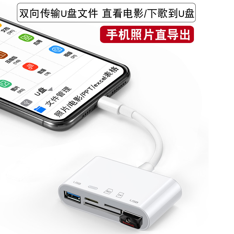 📚 适用安卓华为红米小米手机连接硬盘u盘sd卡u盾3.5mm耳机多功能转换器otg转接头tpc 读取行车记录仪视频数据线