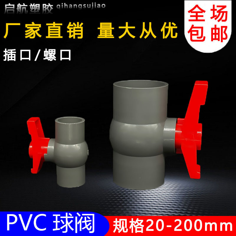 📚 PVC灰色球阀 阀门 开关 螺口 给水管20 25 32 40 50 63 75 90 110