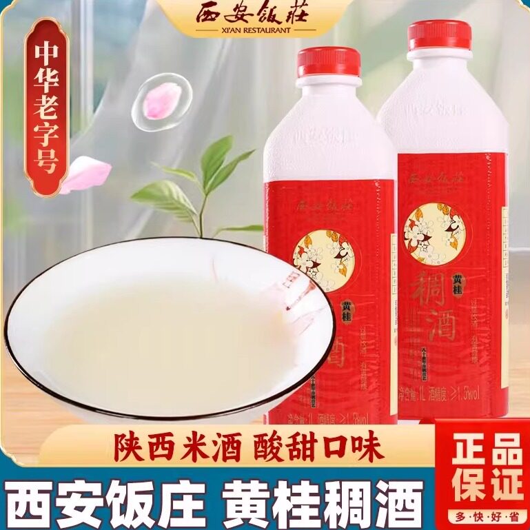 📚 西安饭庄黄桂稠酒1000ml瓶糯米酒陕西西安特产醪糟甜米贵妃桂花酒