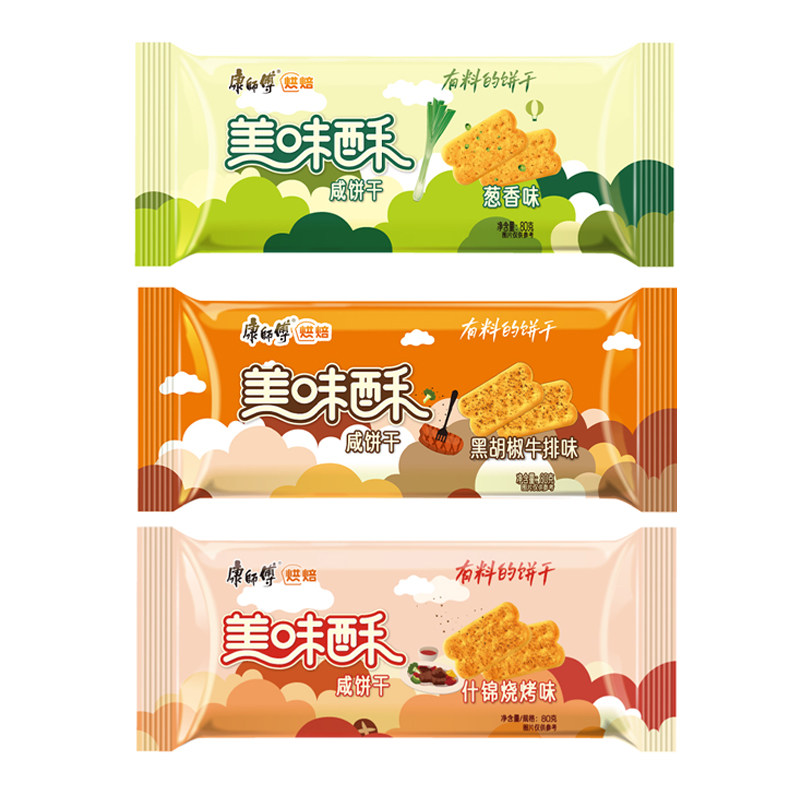 📚 康师傅美味酥80g酥性咸饼干葱香味烧烤味下午茶办公小吃休闲零食