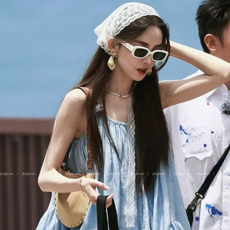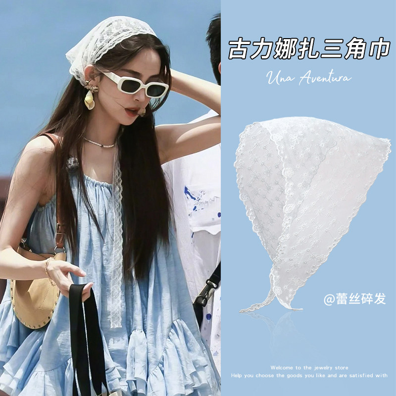 📚 古力娜扎同款蕾丝头巾女田园风法式高级感包头发带海边度假三角巾