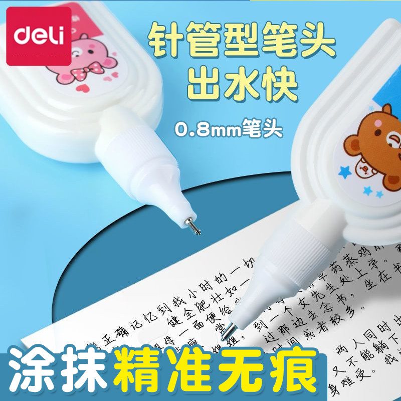 📚 得力涂改液修正液无痕去字学生用错别字速干修改器消字灵消写错字涂改笔中性笔去除笔迹神器涂改带批发