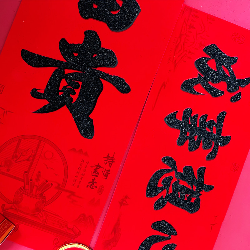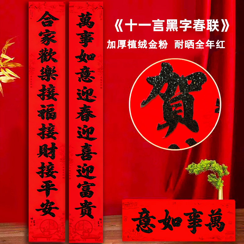 📚 马年十一言植绒洒金对联高档11字春联耐晒加厚农村家用入户门装饰