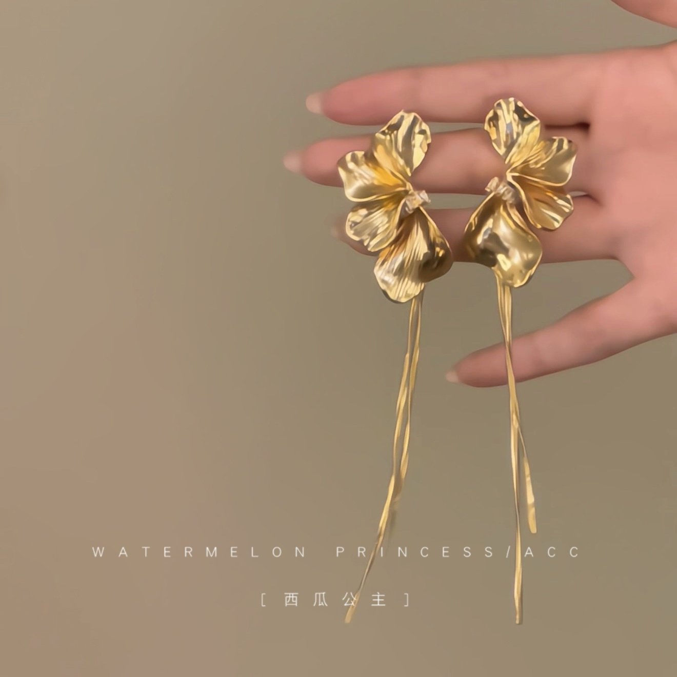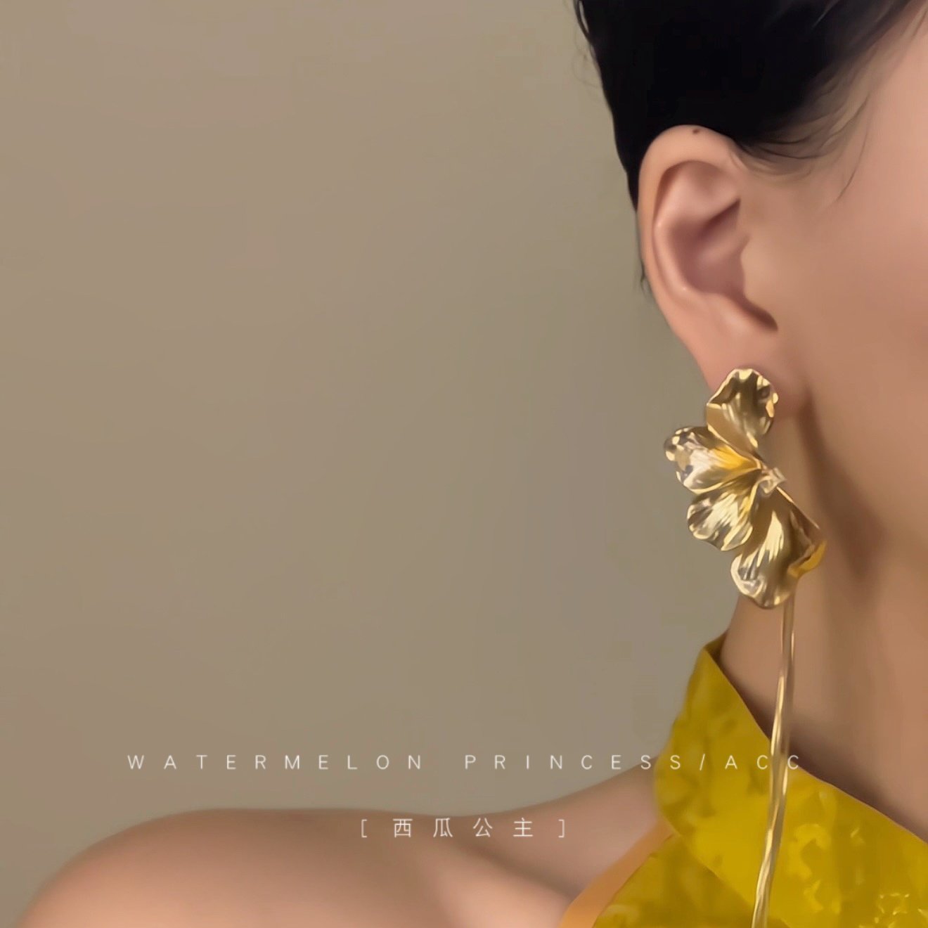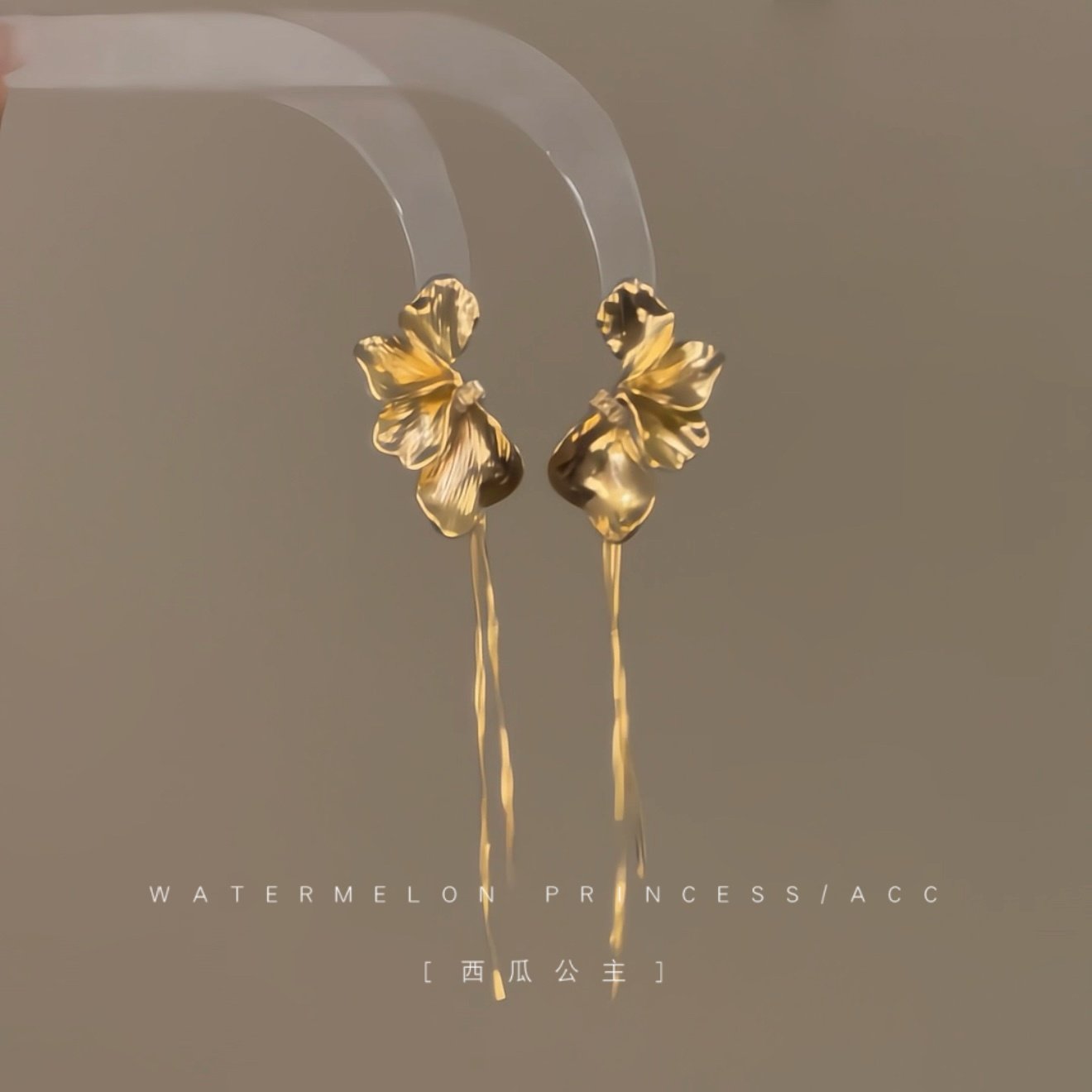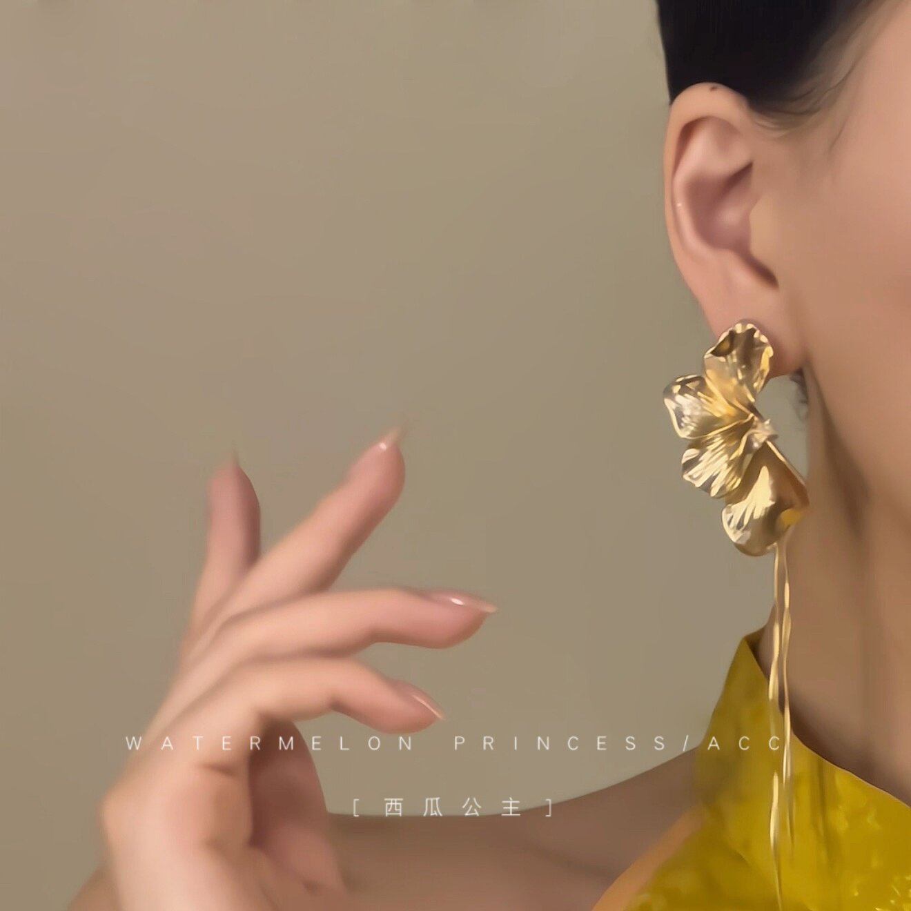 📚 「鎏金飞花」新中式国风耳环女古风金色花朵长款流苏旗袍汉服耳饰