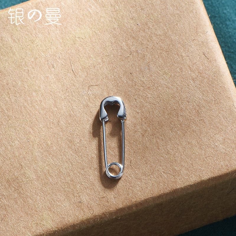 📚 925纯银安全别针扣针小别针黑银色饰品潮男耳环百搭女耳饰耳挂
