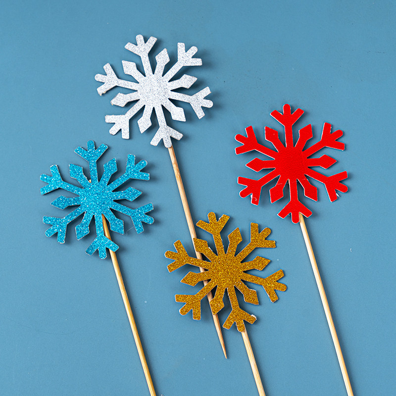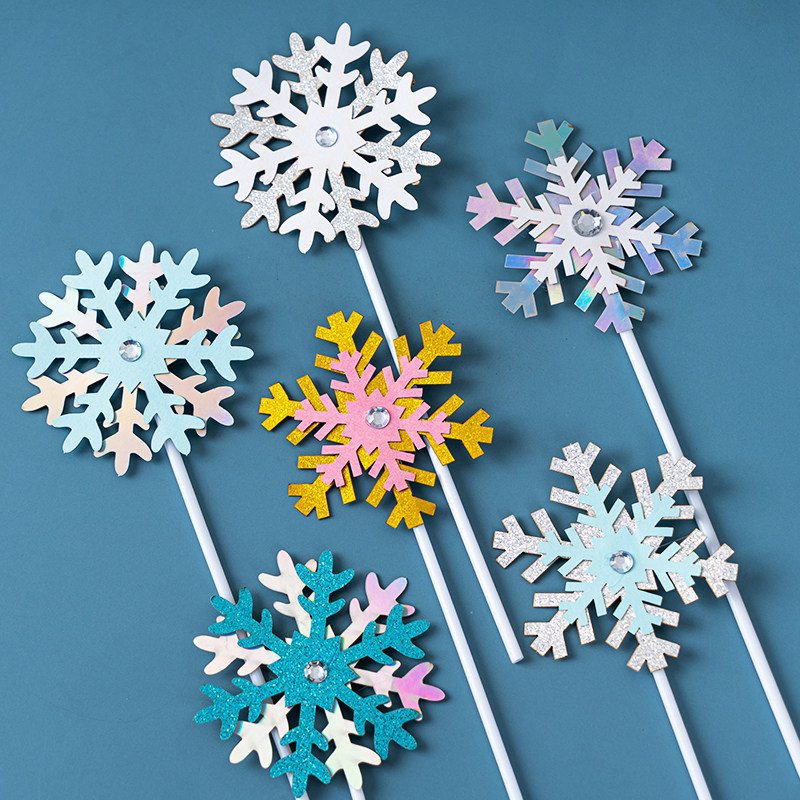 📚 公主生日蛋糕派对甜品台装饰圣诞节冰雪银白色雪花亚克力插件插牌
