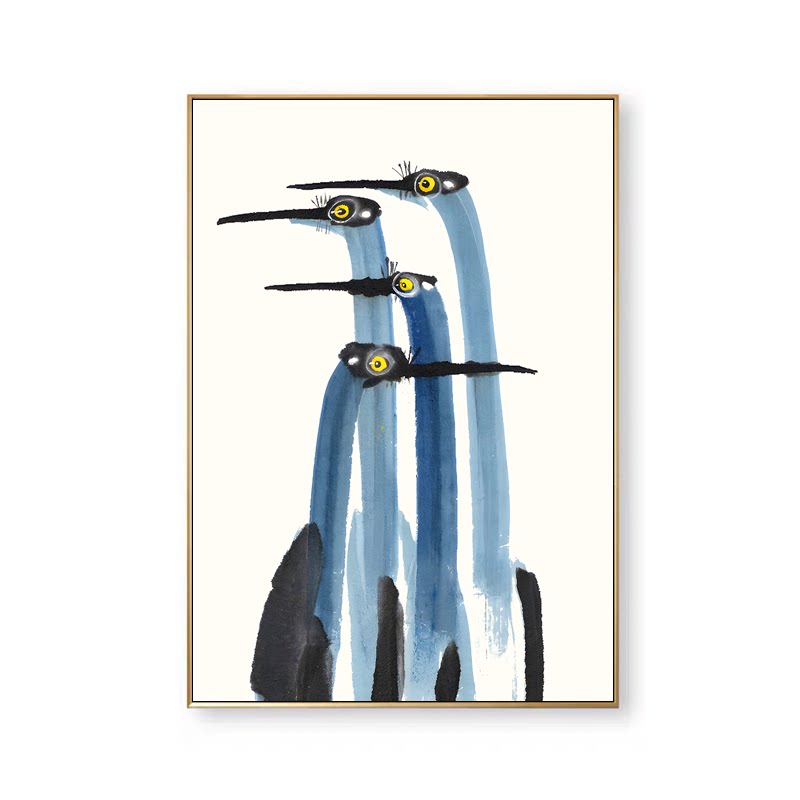 📚 中古风VINTAGE绿色油画手绘蓝鹤动物装饰画客厅装饰 画芯不含画框