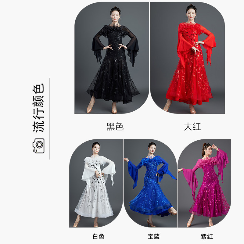 📚 摩登舞裙女新款国标舞华尔兹交谊舞广场舞大摆连衣裙表演出比赛服