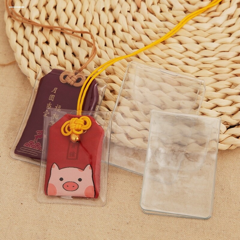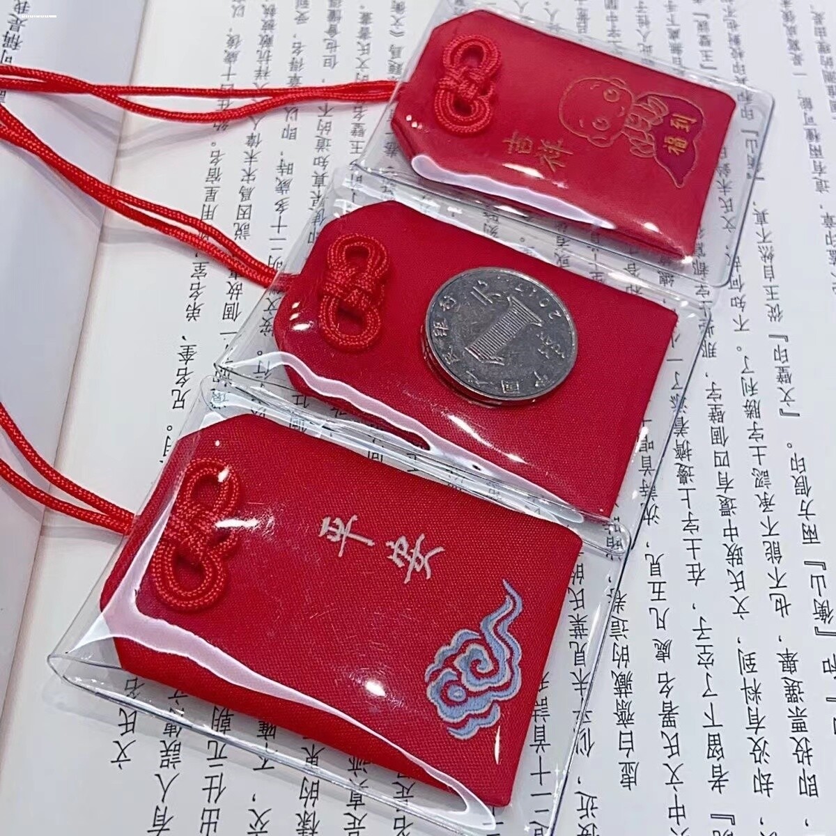 📚 护身符保护套平安福袋放装符的红布小袋子挂绳挂脖防水三角形透明