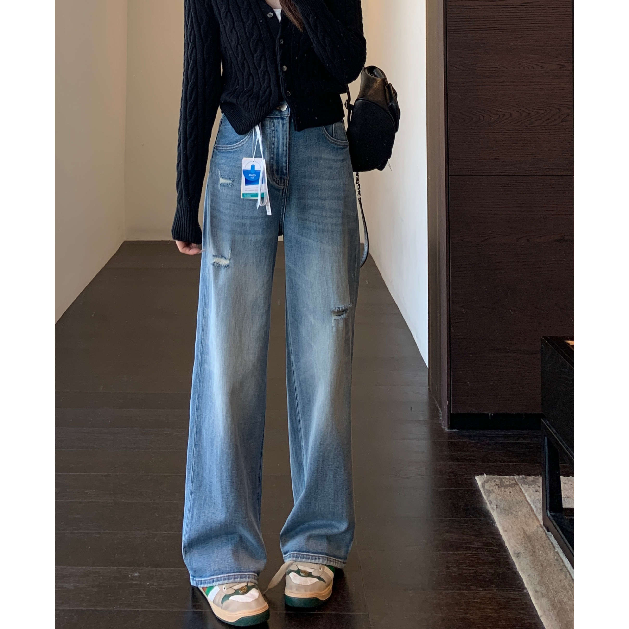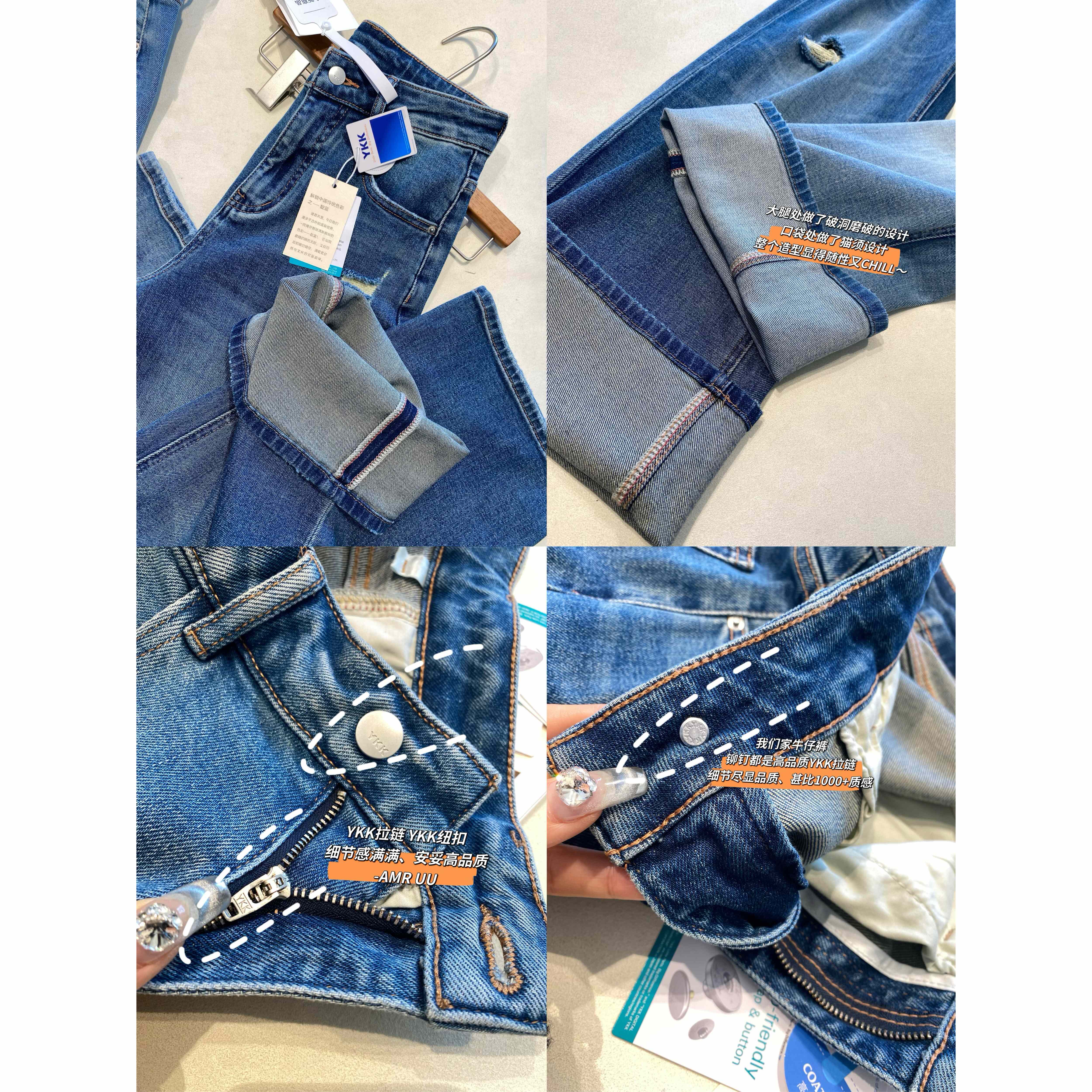 📚 AMR UU◆时髦破洞 美式设计感高腰直筒阔腿牛仔裤女春夏2026新款