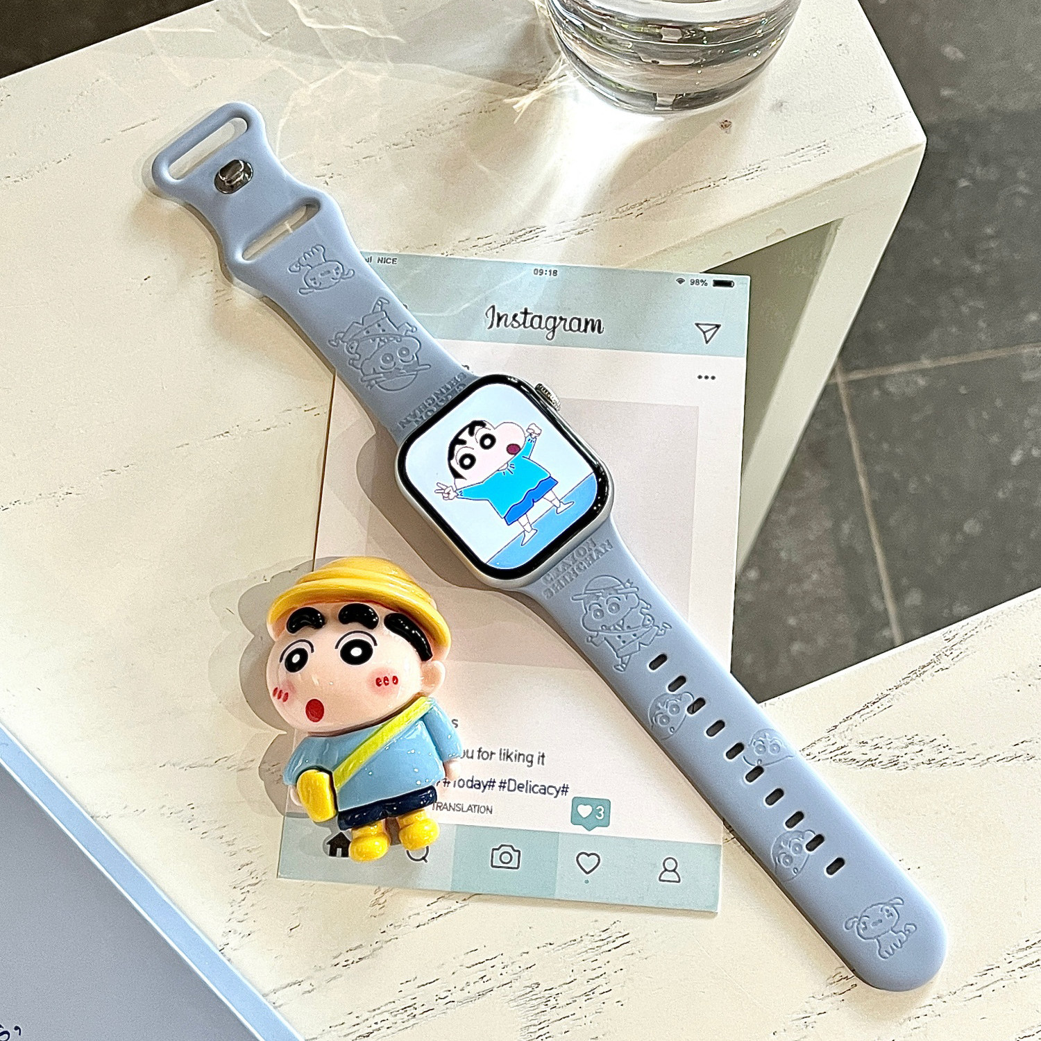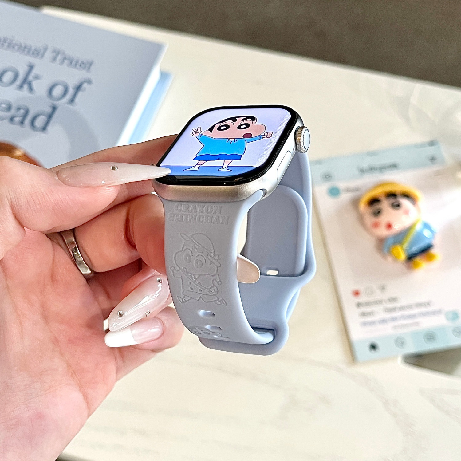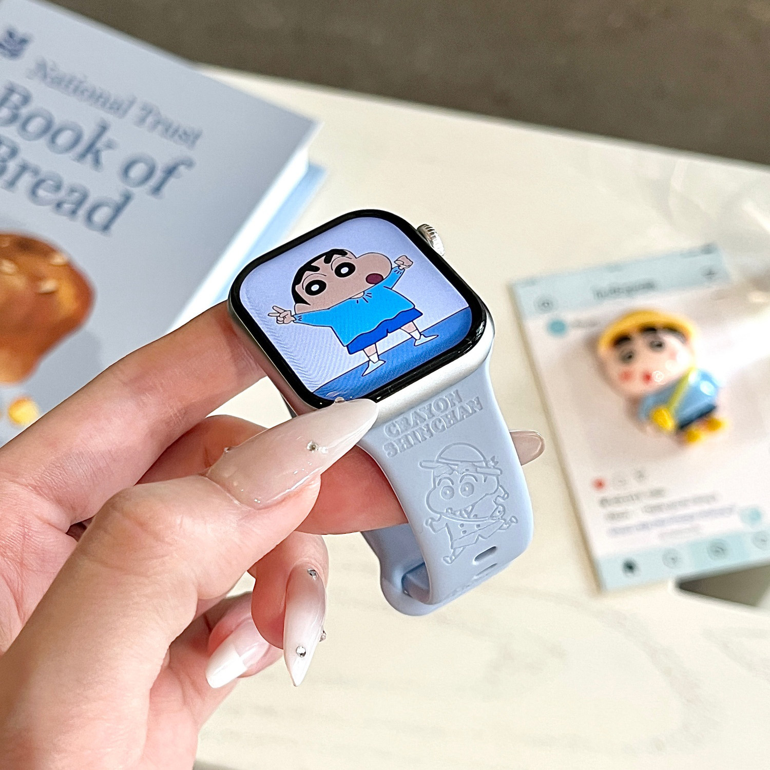 📚 蜡笔小新适用苹果手表表带iwatchS11/10/9硅胶Apple蓝色2ultra/SE