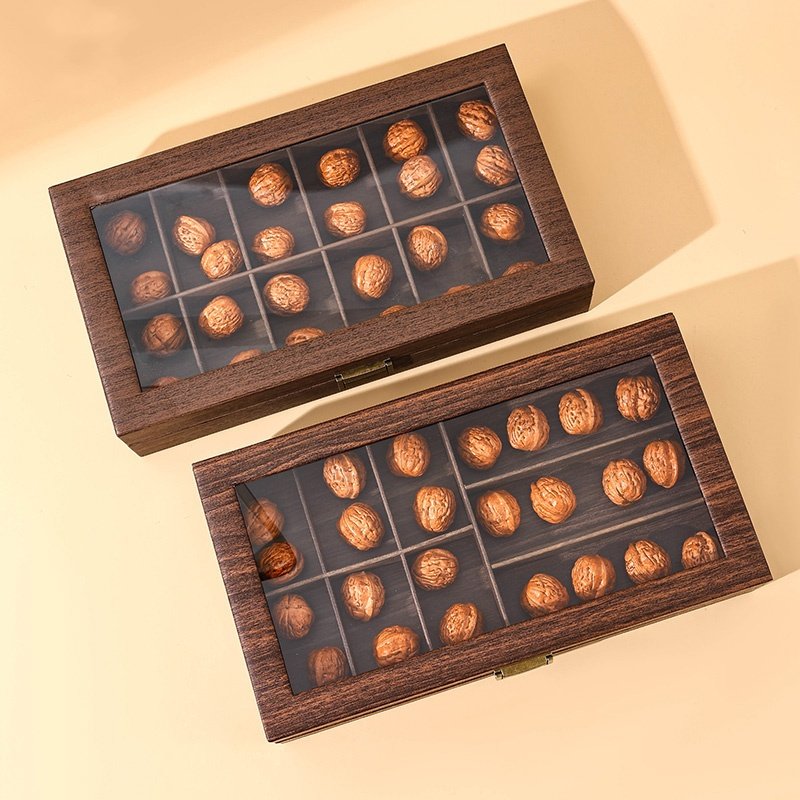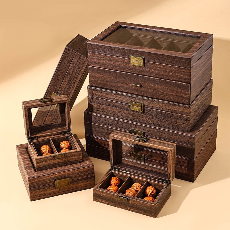 📚 复古木纹皮文玩核桃收纳盒大容量防尘核桃收藏箱佛珠手串展示盒子