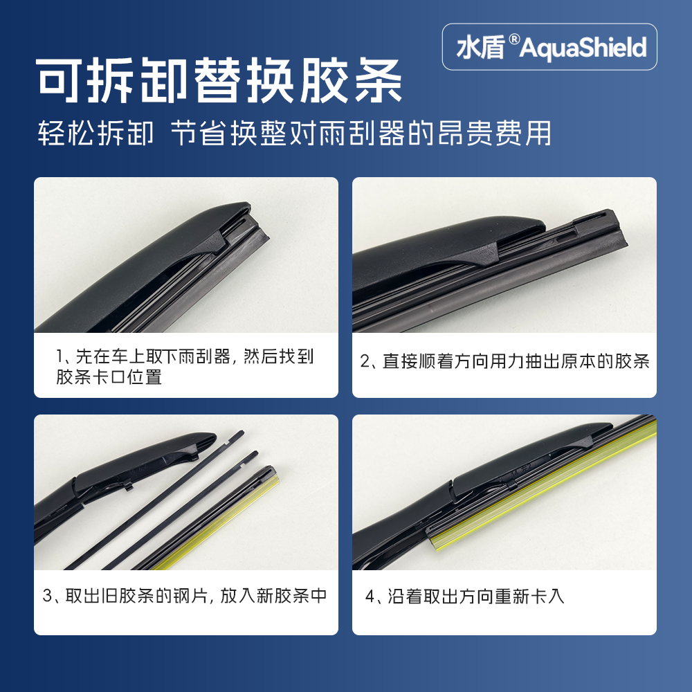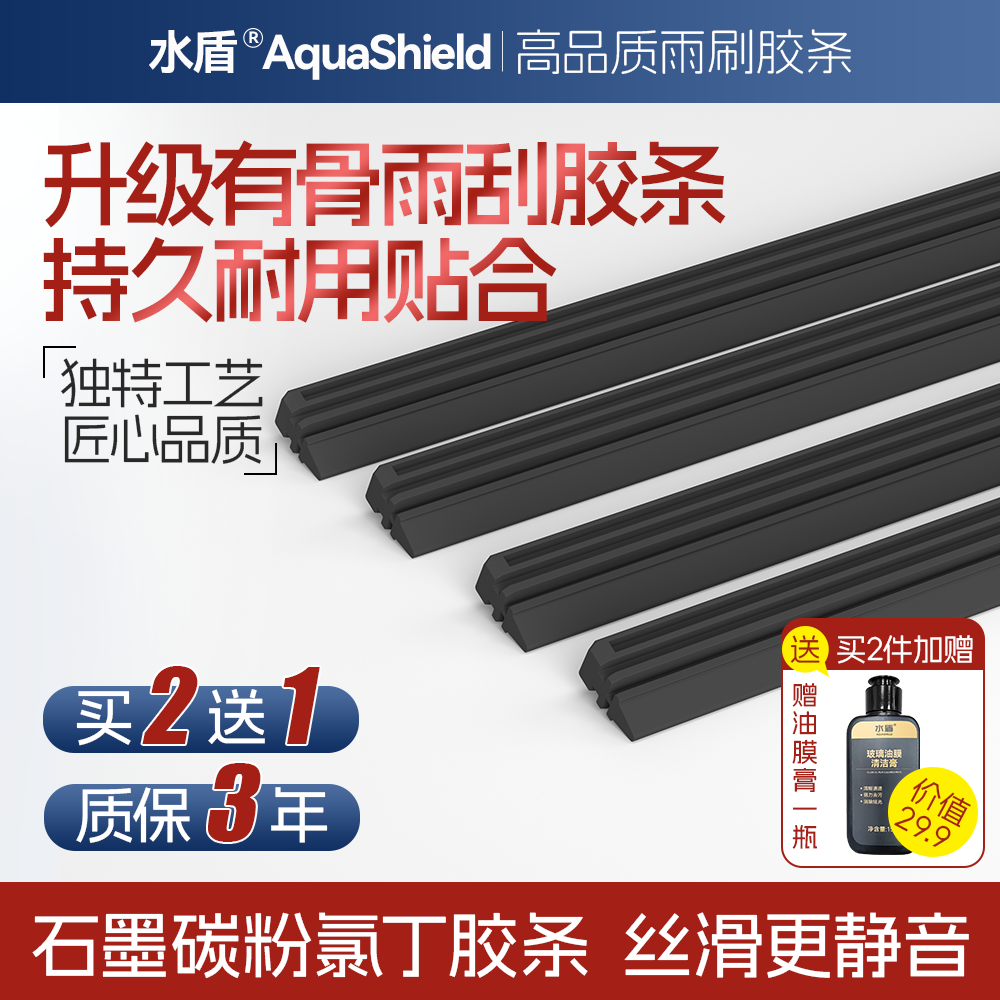 📚 水盾有骨雨刮胶条静音雨刮片有骨前雨刷器替换氯丁胶条耐用高清条