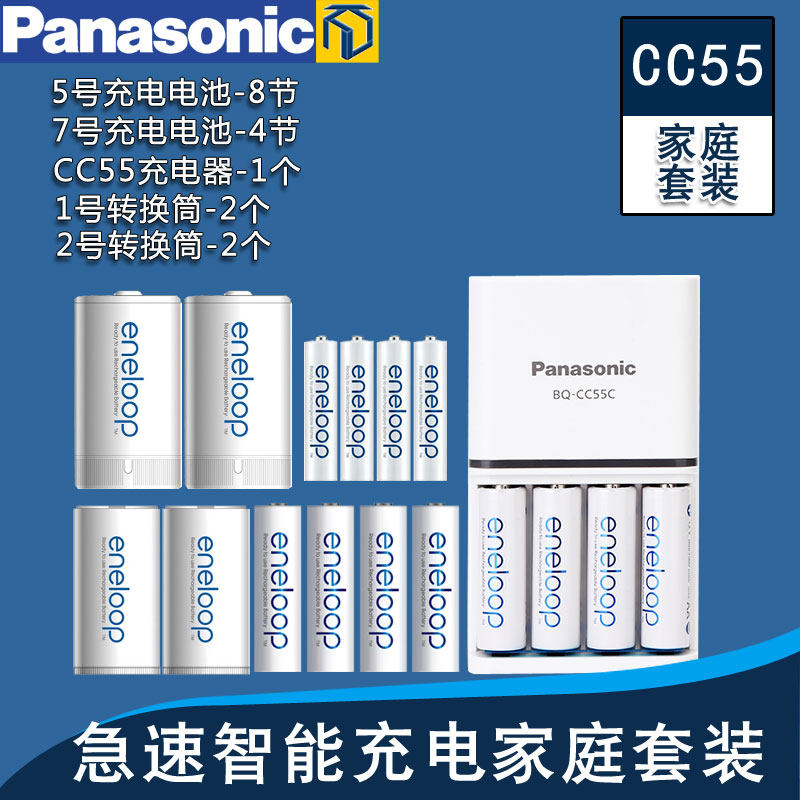 📚 松下爱乐普5号8节7号4节充电电池1号2号转换筒智能快速充电器套装爱老婆五号七号1.2V电池急速充电器家庭套装