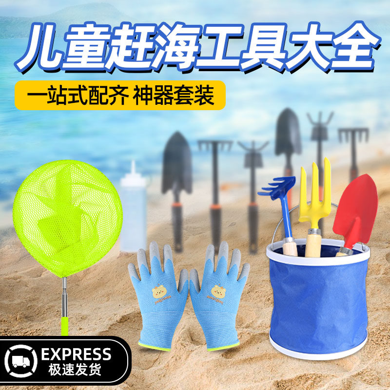 📚 儿童赶海装备海边挖沙工具套装神器海鲜螃蟹夹子蛤蜊耙子沙滩铲子