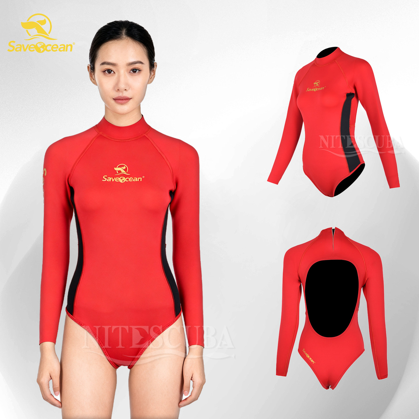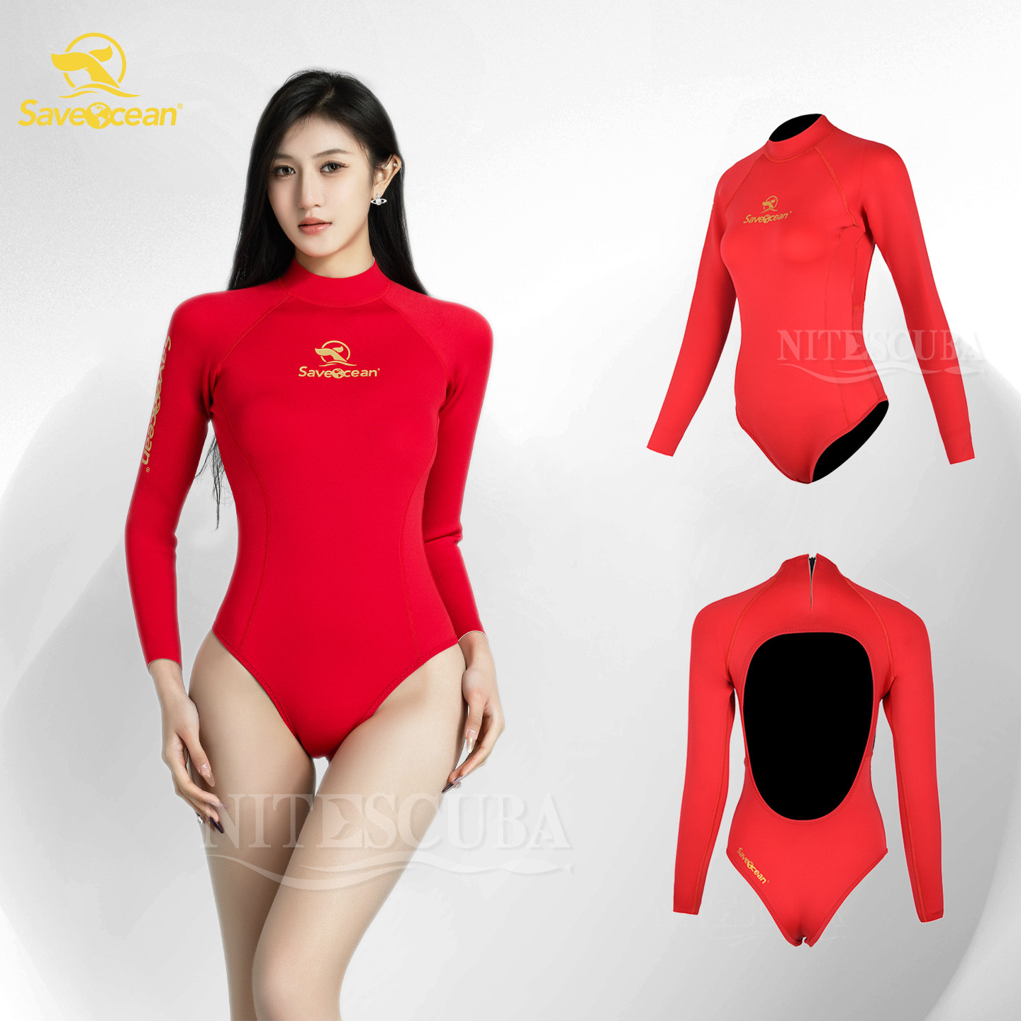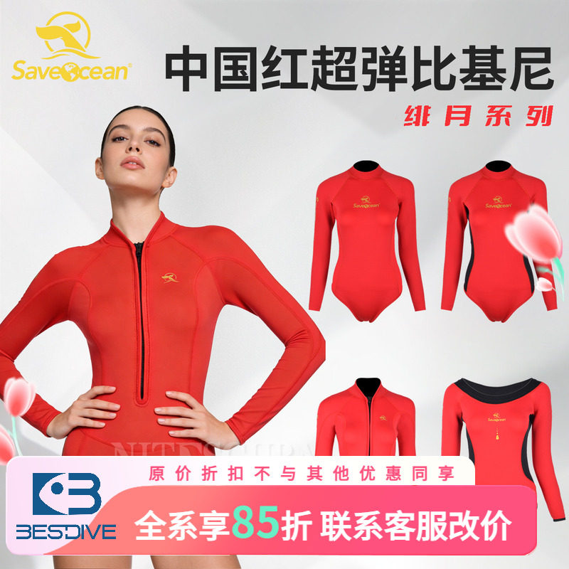 📚 Bestdive Saveocean自由潜水湿衣女2mm鸿运中国红绯月连体比基尼