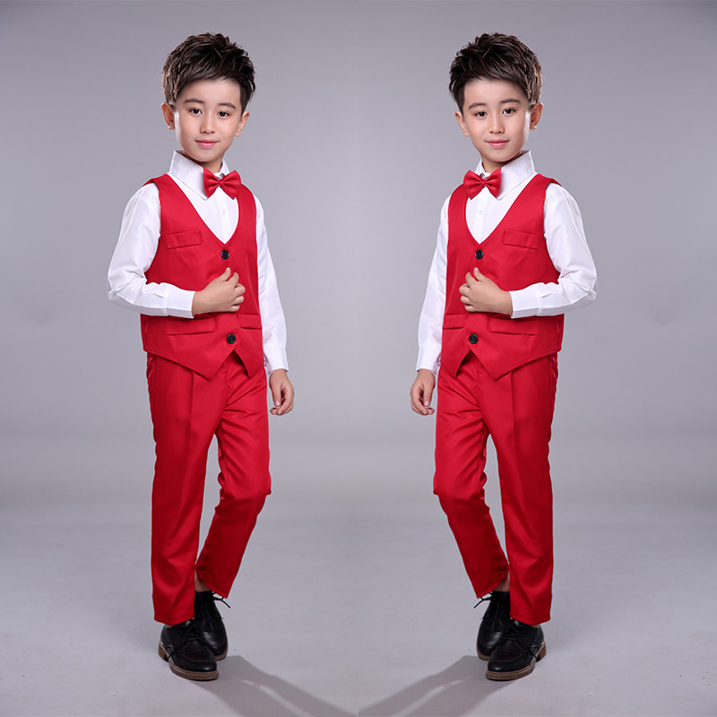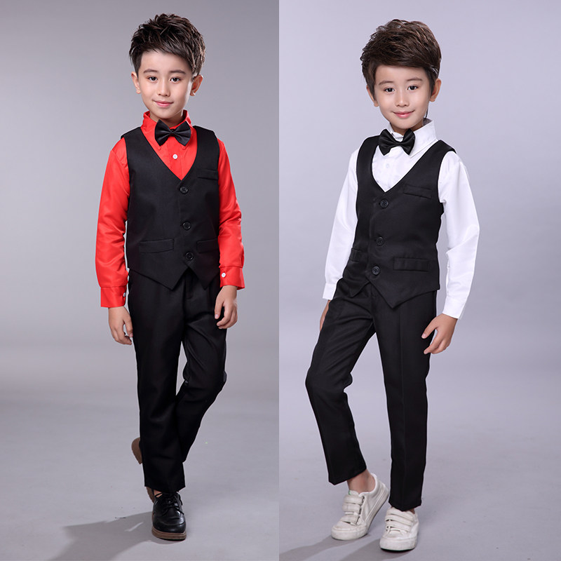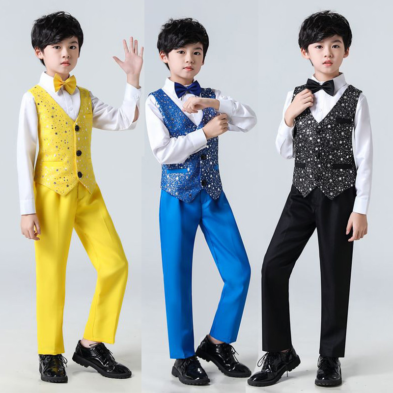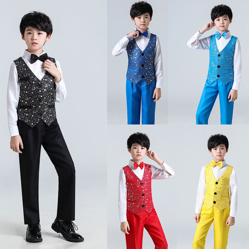 📚 男童西装马夹儿童钢琴节目表演出服亮片男孩黑色礼服主持走秀马甲