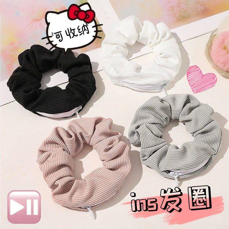 📚 新款拉链大肠发圈藏东西发绳少女时尚百搭储物收纳发圈手腕零钱包