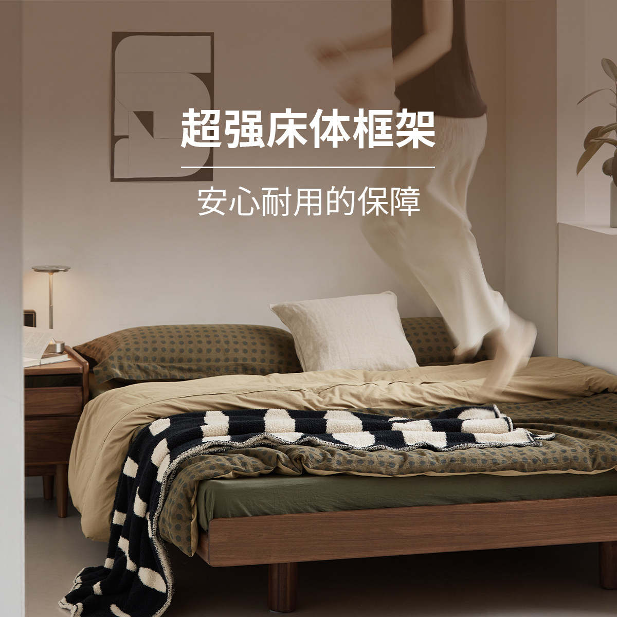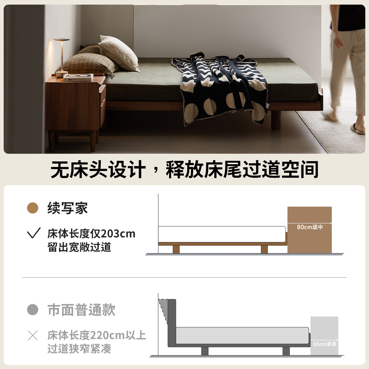 📚 出乎生活平川齐边床榻榻米实木床齐边北美黑胡桃木小户型悬浮床