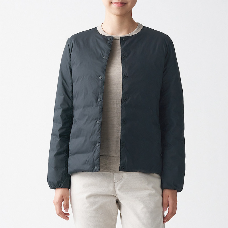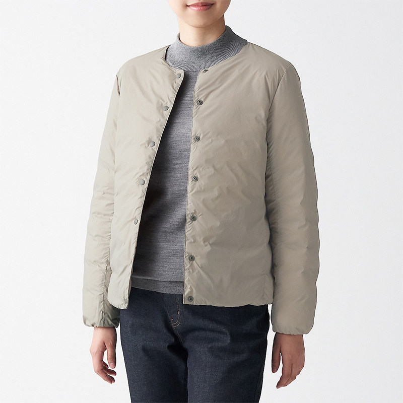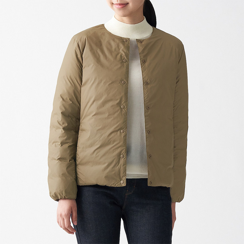 📚 日系羽绒服女夹克衫无领轻量薄款修身保暖中间层羽绒内胆短外套