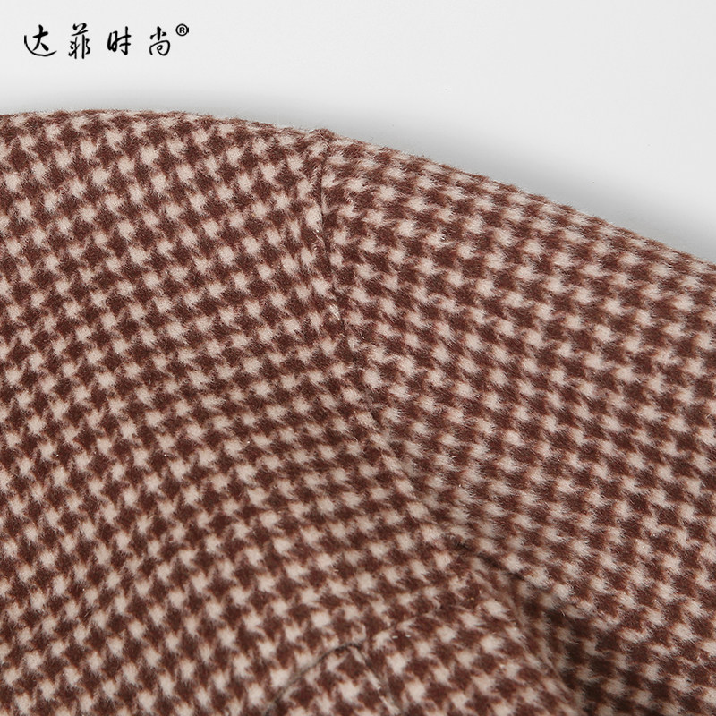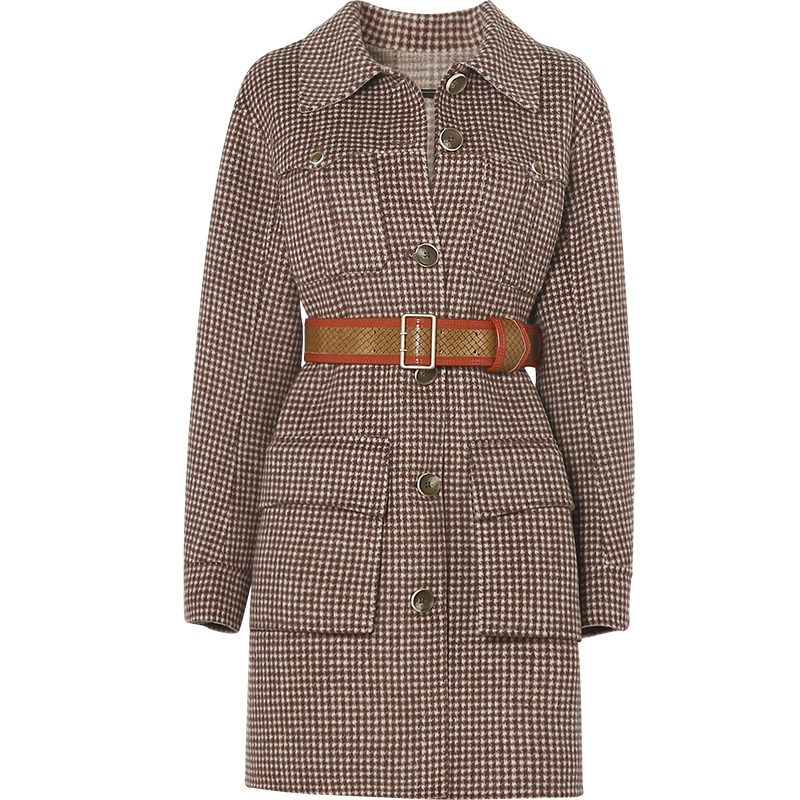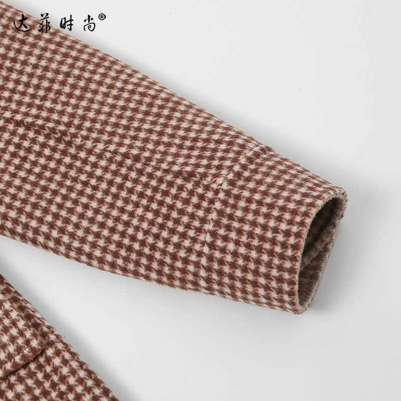 📚 2025冬季新款时尚复古咖色千鸟格双面呢大衣衬衫式呢子外套女