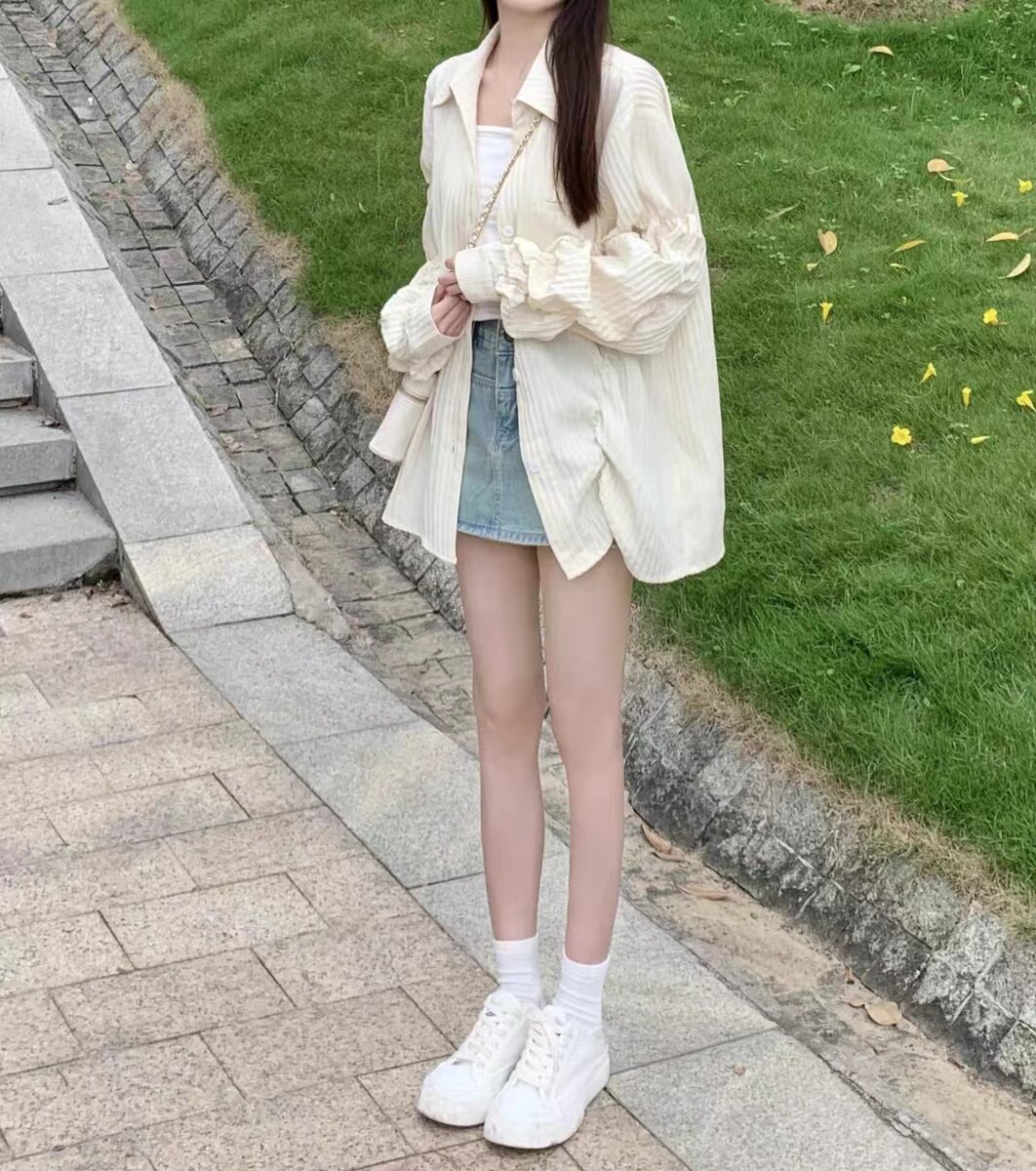 📚 大码胖妹妹法式防晒棉麻衬衫外套女夏设计感小众薄款衬衣开衫上衣