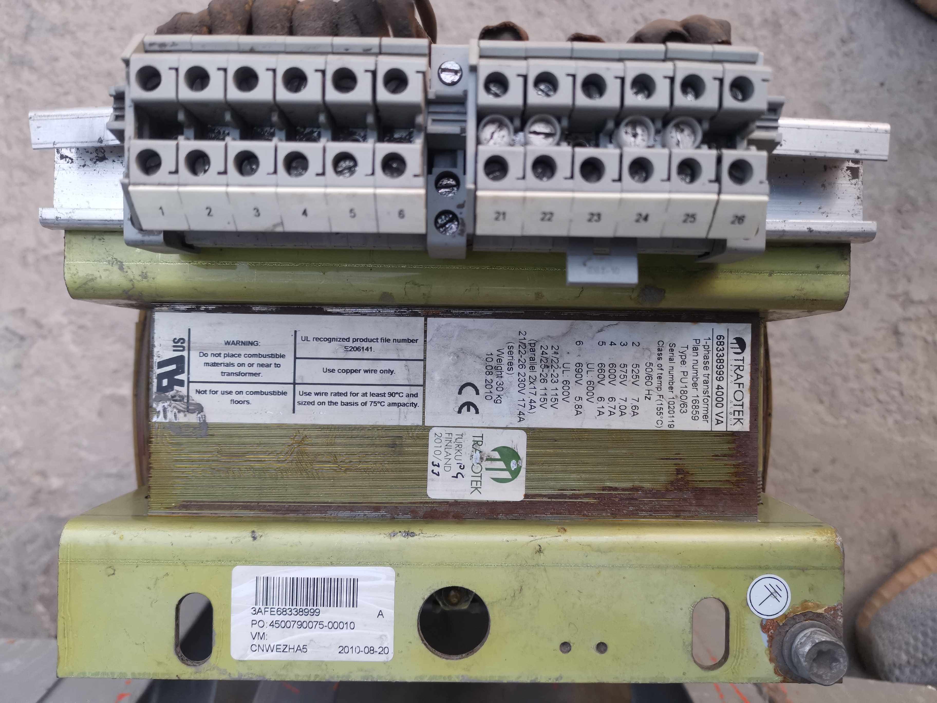 📚 ABB变频器控制变压器TRAFOTEK 3AFE68338999 4000 VA PU180/63