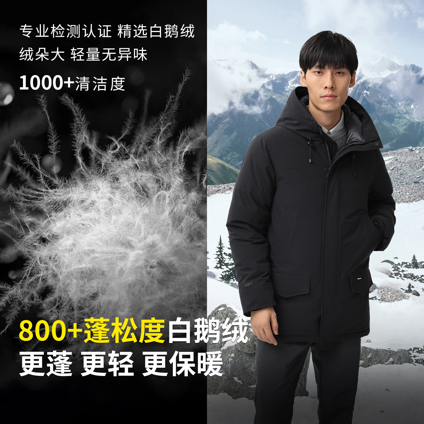 📚 君羽户外800蓬白鹅绒羽绒服男中长款冬季加厚保暖连帽鹅绒服52073