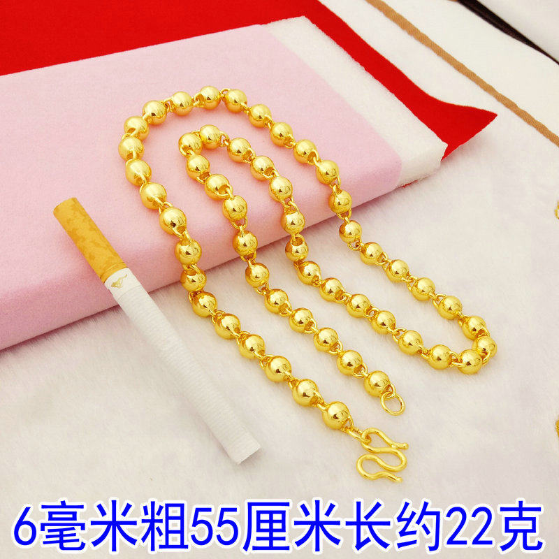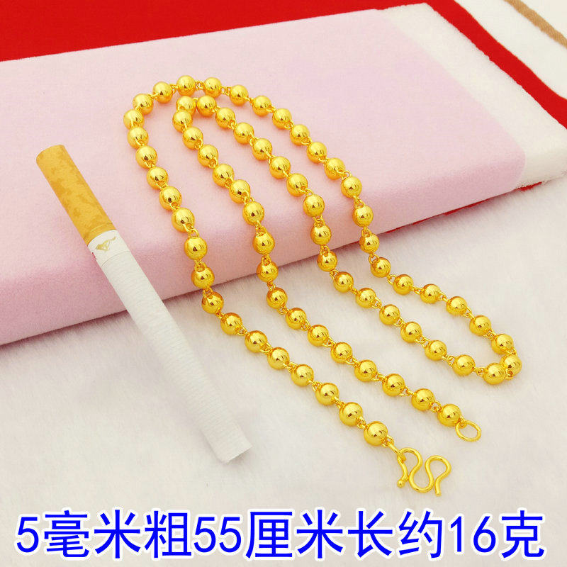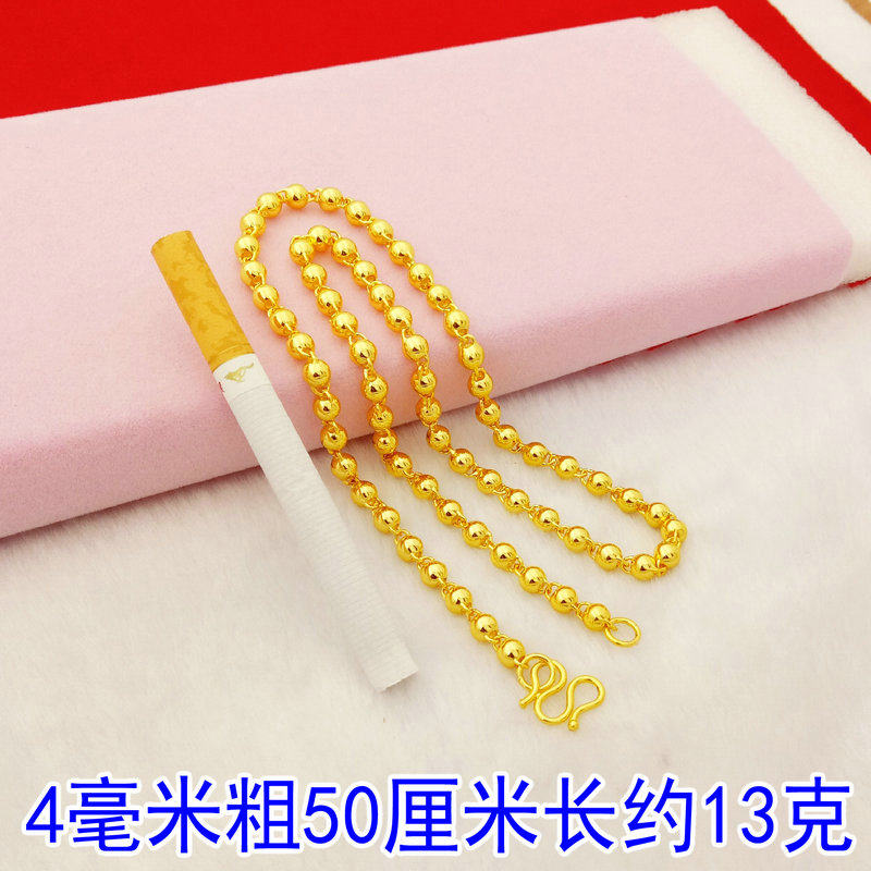 📚 越南沙金圆珠链子久不掉色仿真黄金色转运珠项链镀金空心光珠项链