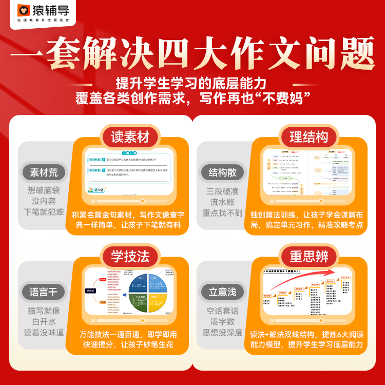 📚 【猿辅导官方正版】当堂写出满分作文课小学语文备考提分预习复习新课标三四五六年级写作技法阅读素材积累真人直播在线互动