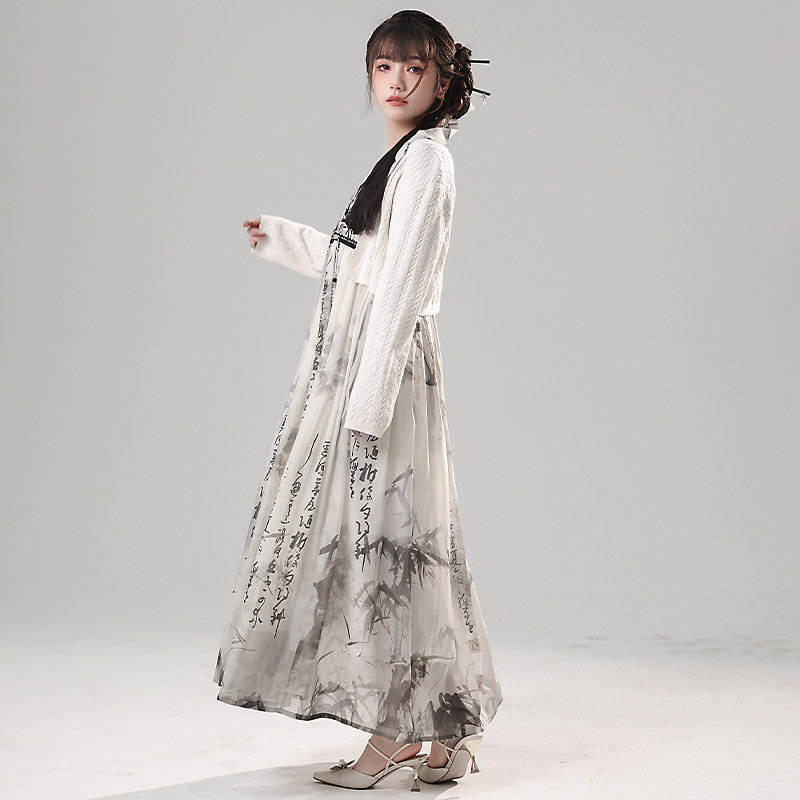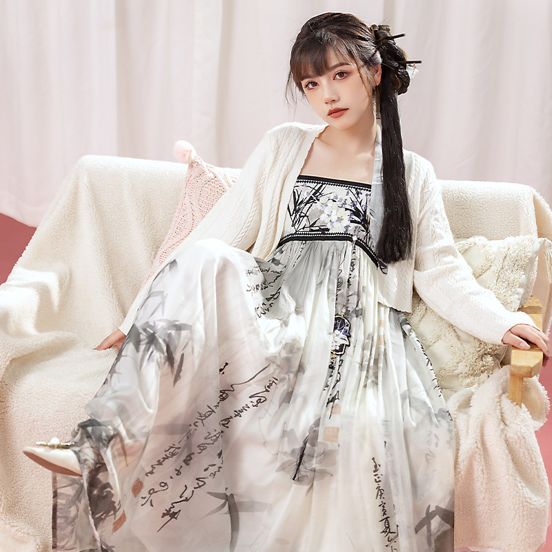 📚 花朝记|城市情书|倚竹|秋汉服元素|针织绣花|开衫齐胸吊带裙