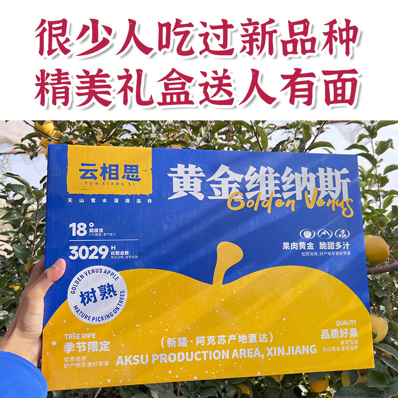 📚 新疆阿克苏黄金维纳斯苹果水果新鲜当季整箱特产冰糖心正品旗舰店