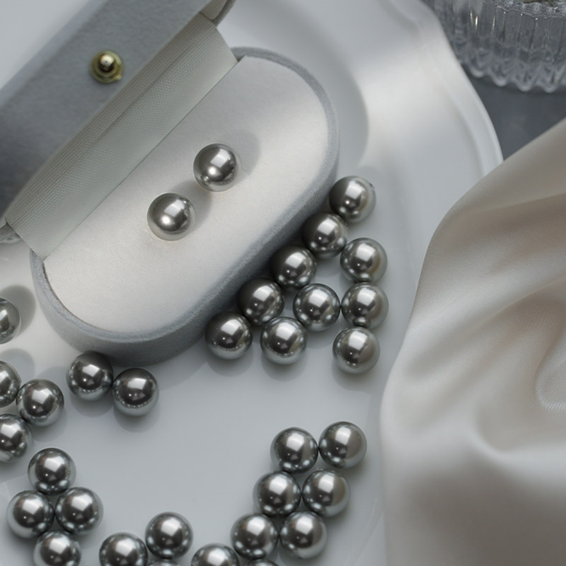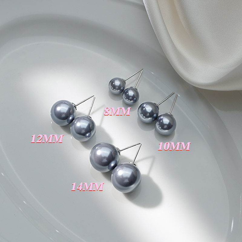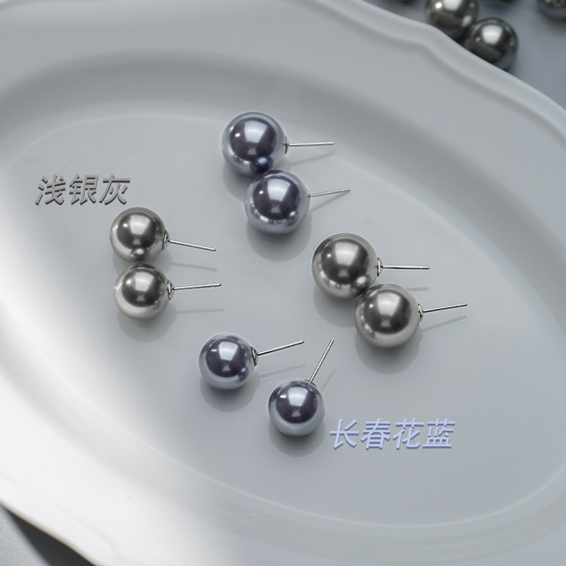 📚 真多麻耳钉施家灰色珍珠耳饰925纯银轻小众奢秋冬高级感正圆耳环