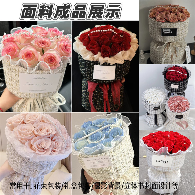 📚 小香风条纹面料花束绣花礼盒包装手工diy花艺材料礼物包装编织布