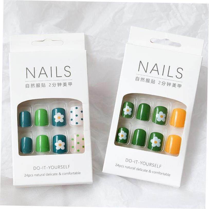 📚 24Pcs Fake Nails Finished Nail Patch Short Fake Nails